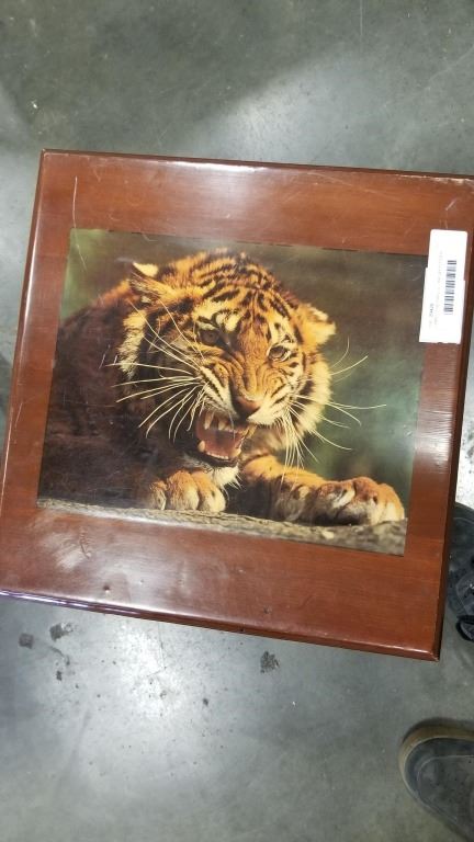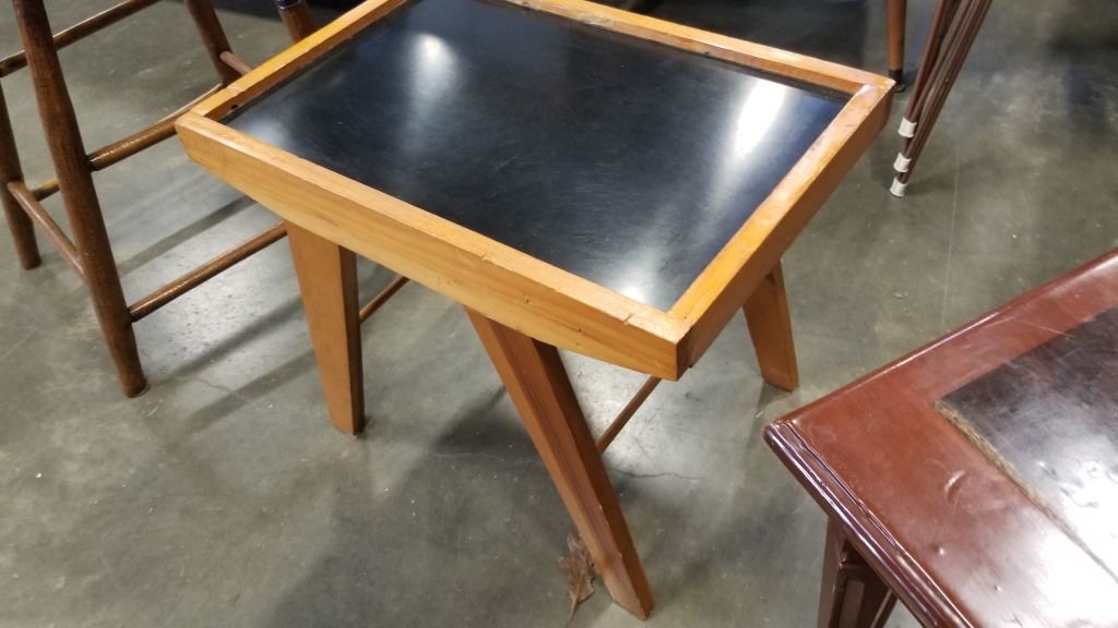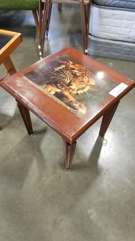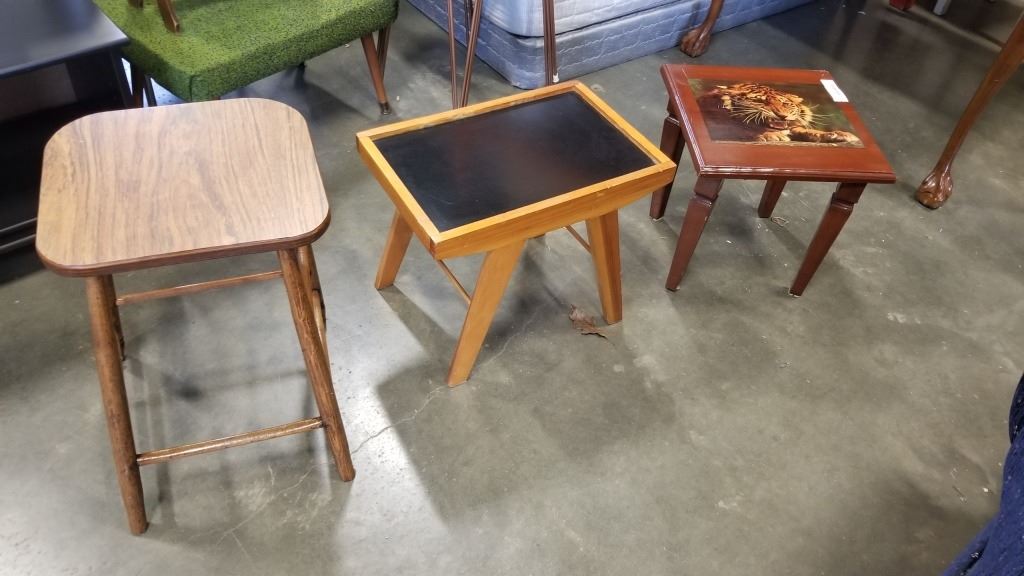 3 SMALL ENDTABLES - ONE WITH TIGER ART