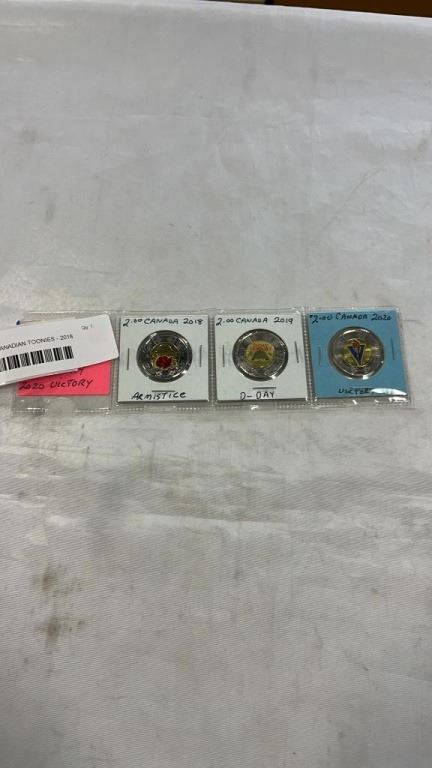 3 SPECIAL CANADIAN TOONIES - 2018 ARMISTICE, 2019 DDAY, 2020 VICTORY