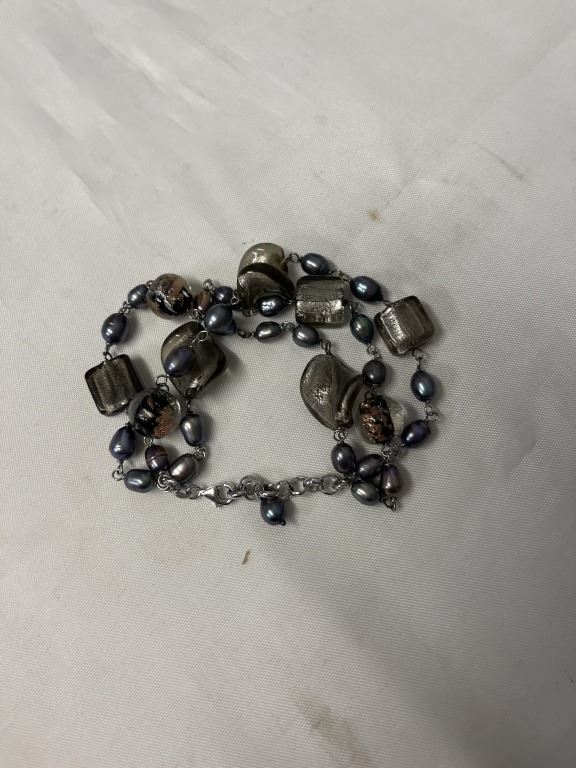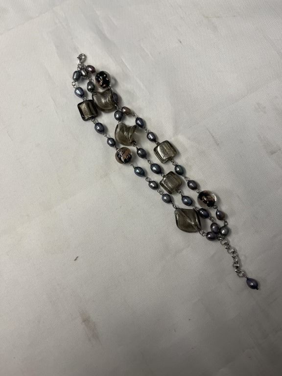 3 STRANDS OF STERLING SILVER W/ CULTURED FRESHWATER PEARLS AND VENETIAN GLASS BEADS BRACELET, MARKED 925