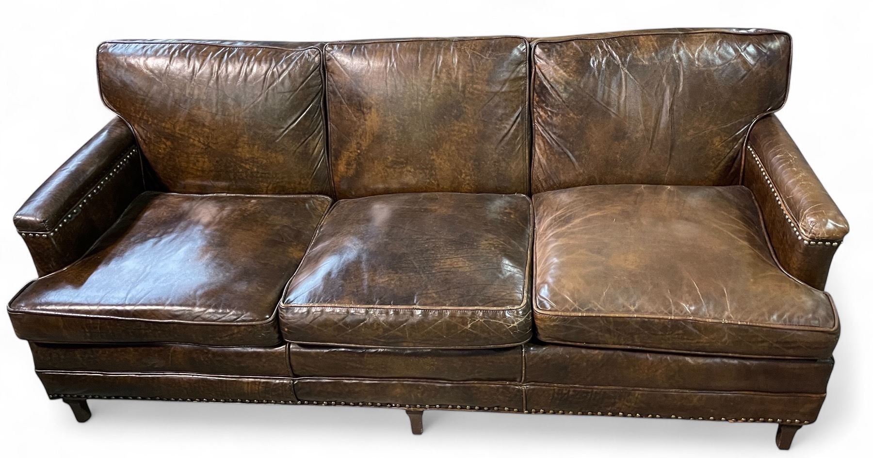 3-Seats Countryside Ranch Style Brown Leather Sofa (Excellent Condition), approx. H30" x W72" x D30"