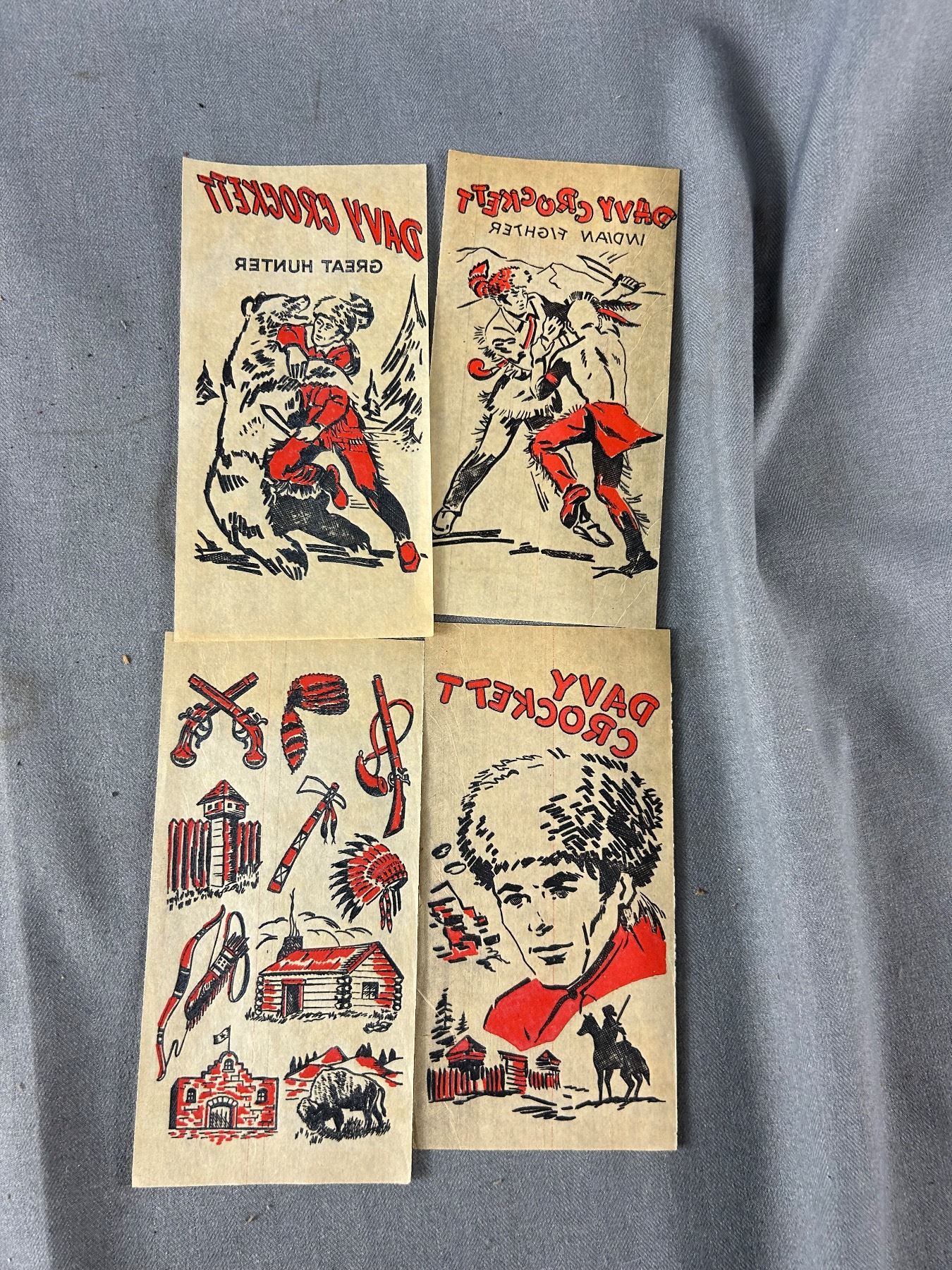 3 Sets Of 1950's Davy Crocket Iron On Transfers (4 Different Per Set) 12 Pcs Total. Each Approx. 3 1/2" x 7"