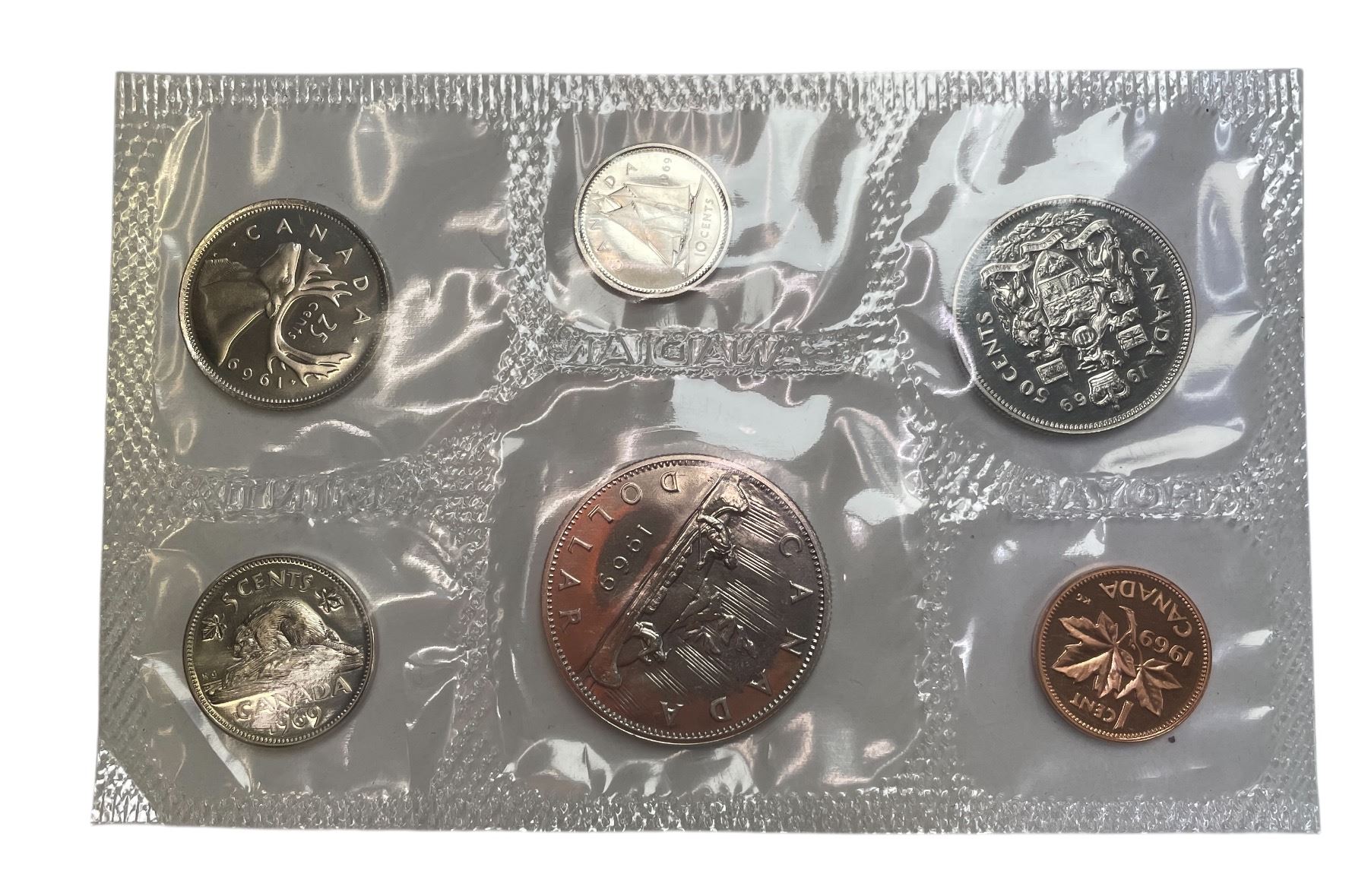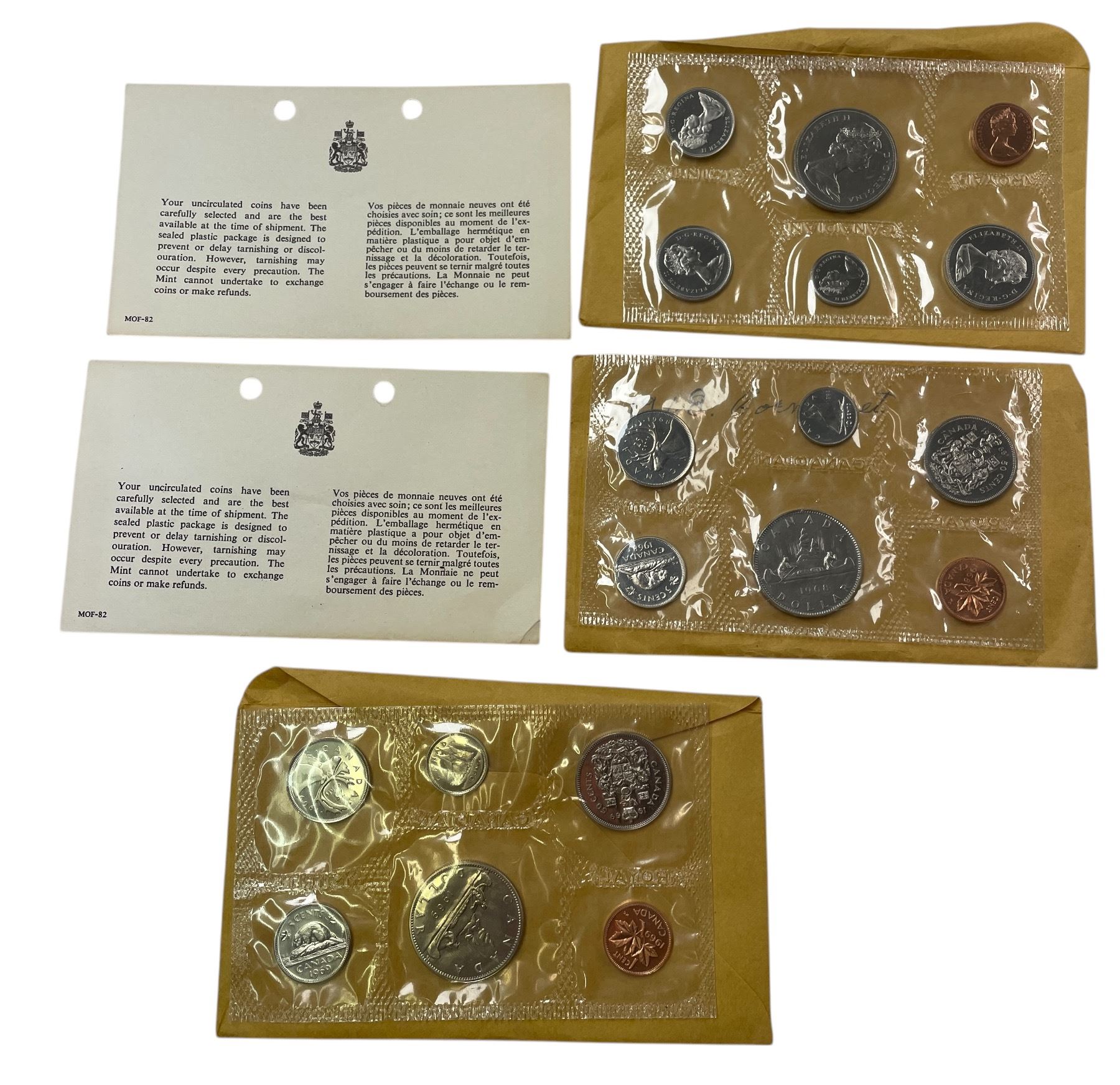 3 Sets Of Uncirculated 1968/69 Canadian Coin Sets: Dollar, 50 Cent, Quarter, Dime Nickel, & Penny