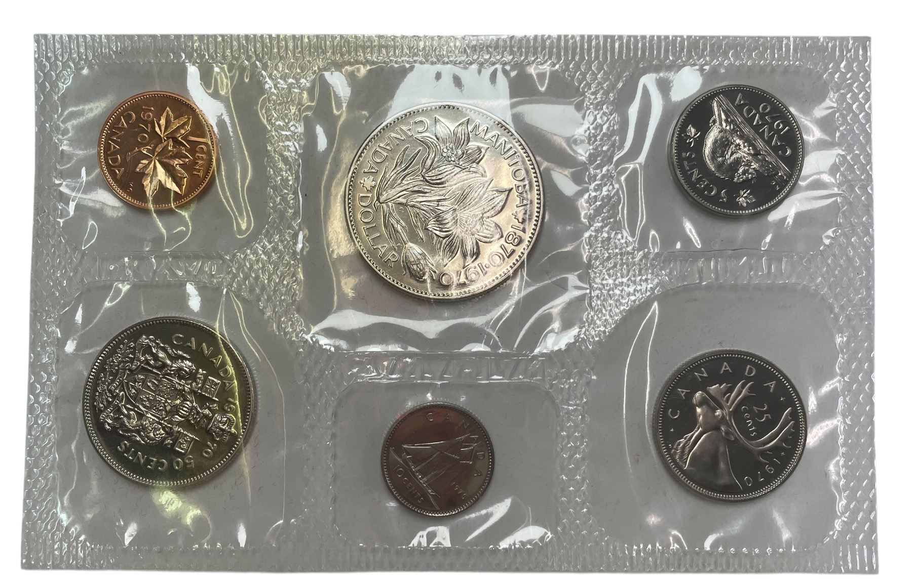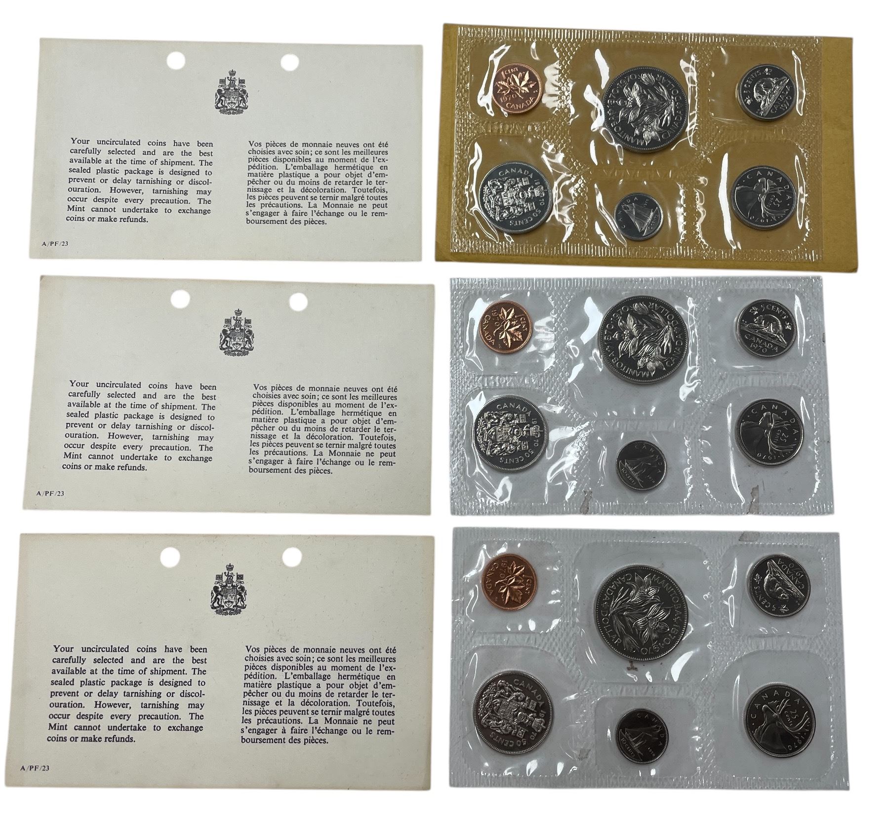 3 Sets Of Uncirculated 1970 Canadian Coin Sets: Dollar, 50 Cent, Quarter, Dime, Nickel, & Penny