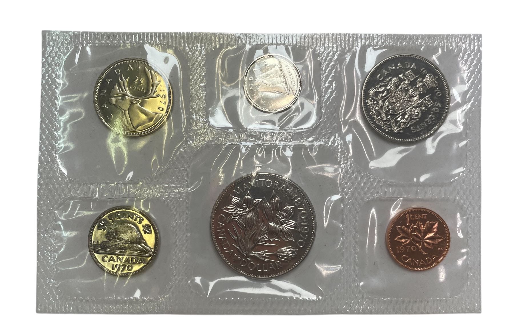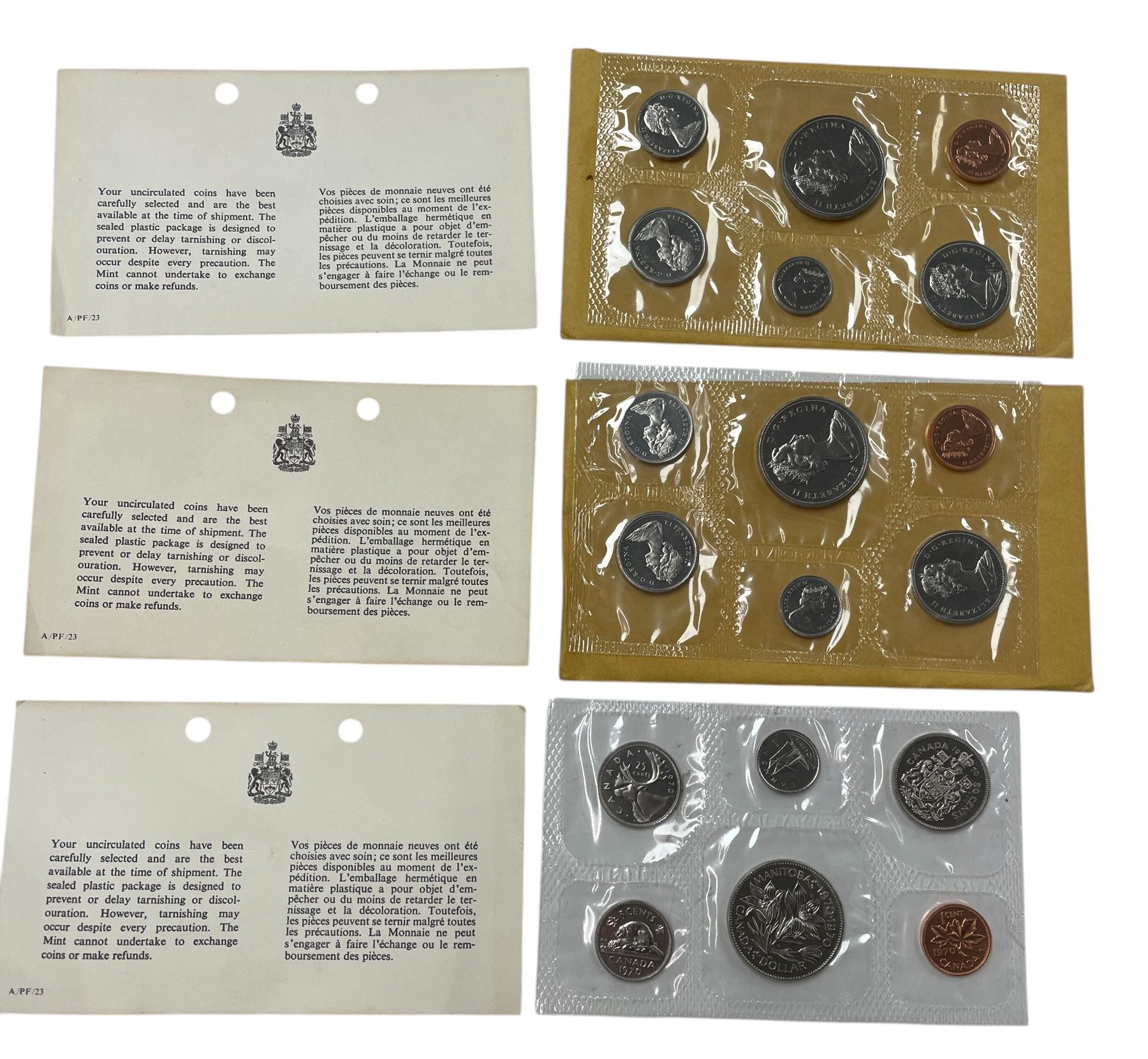 3 Sets Of Uncirculated 1970 Canadian Coin Sets: Dollar, 50 Cent, Quarter, Dime, Nickel, & Penny
