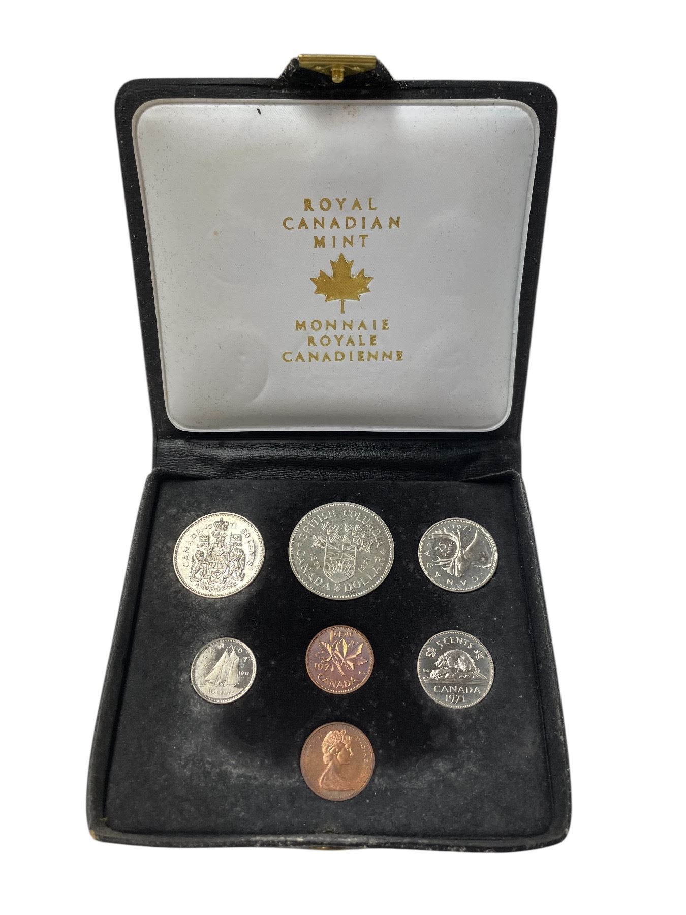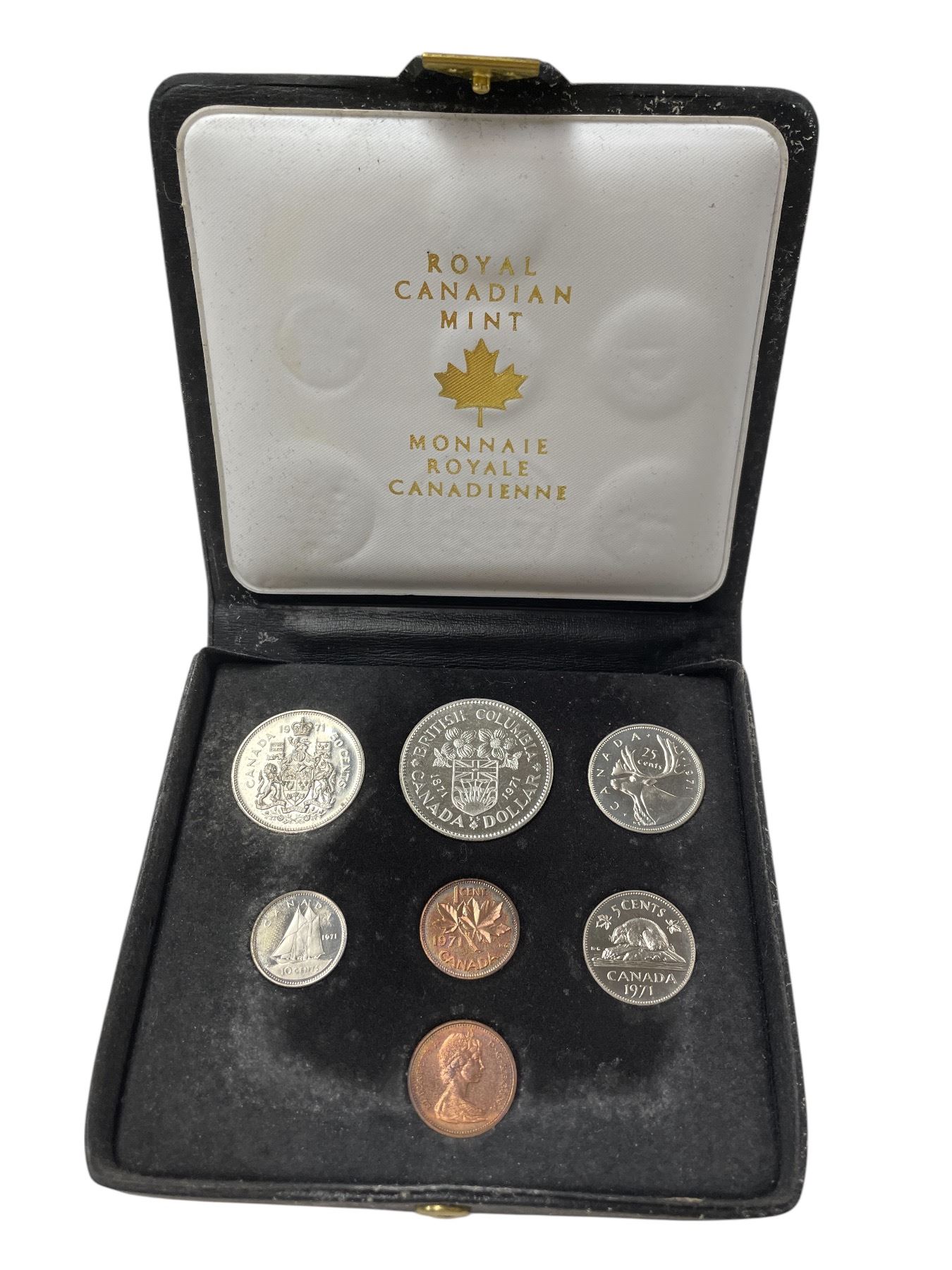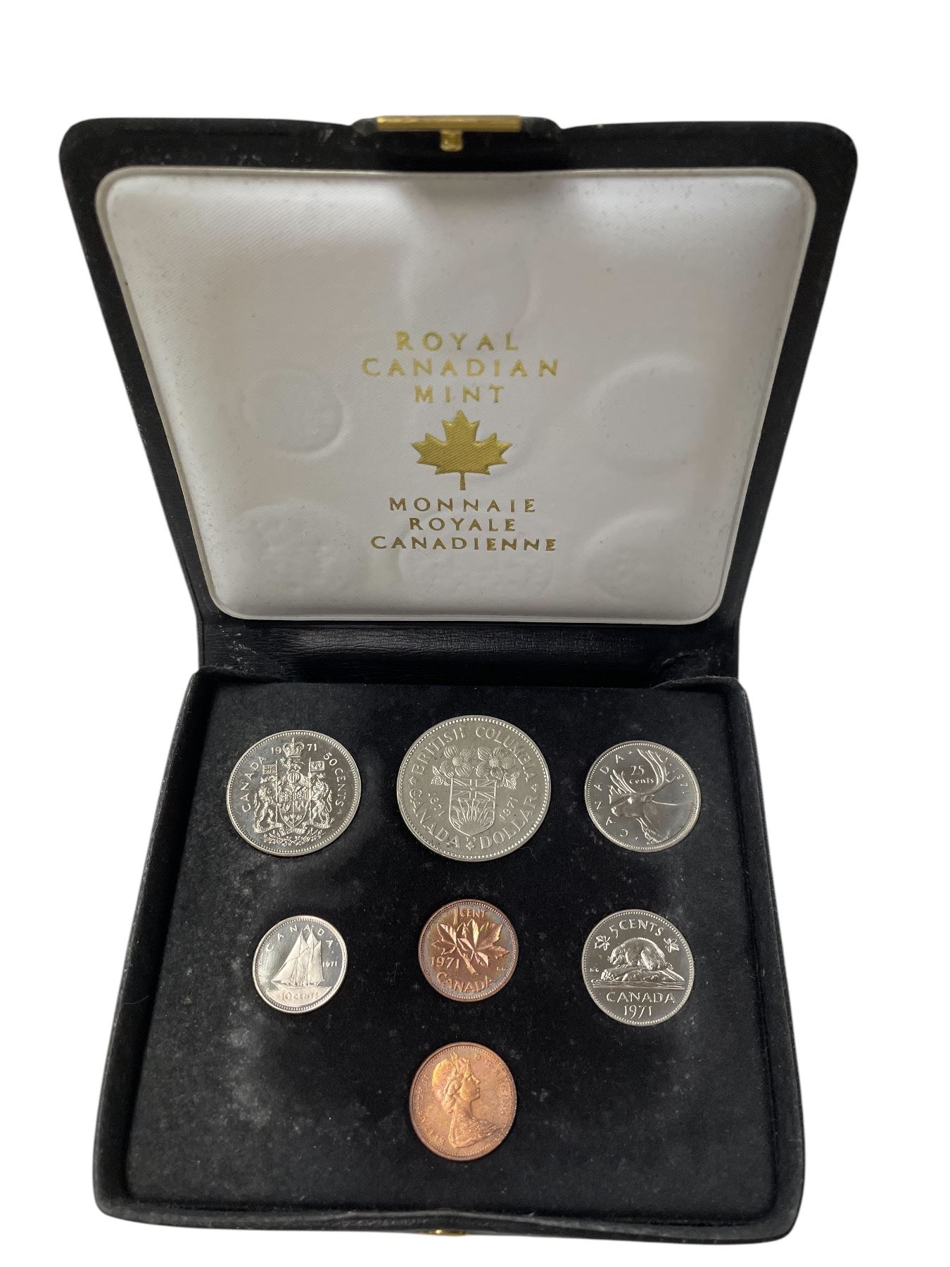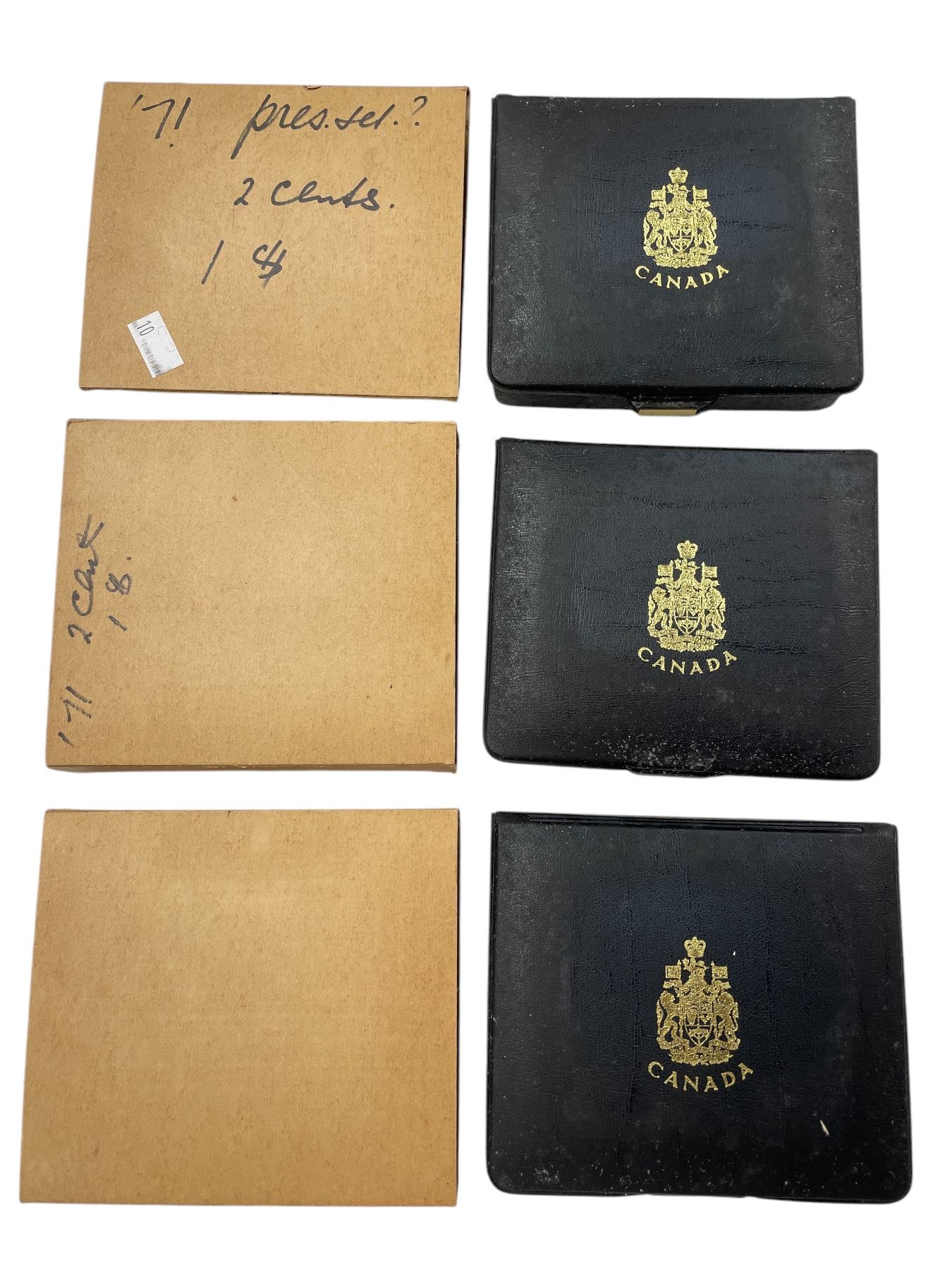 3 Sets Of Uncirculated 1971 Canadian Coin Sets: Dollar, 50 Cent, Quarter, Dime, Nickel, & Penny
