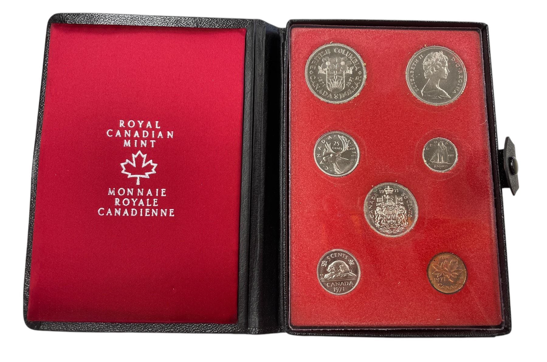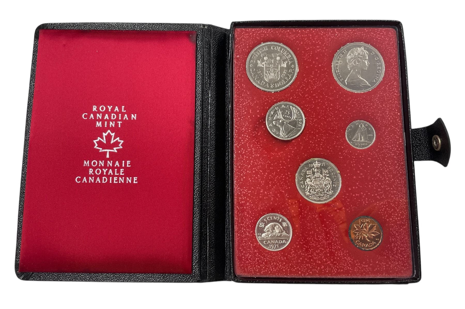 3 Sets Of Uncirculated 1971 Canadian Coin Sets: Dollar, 50 Cent, Quarter, Dime, Nickel, & Penny