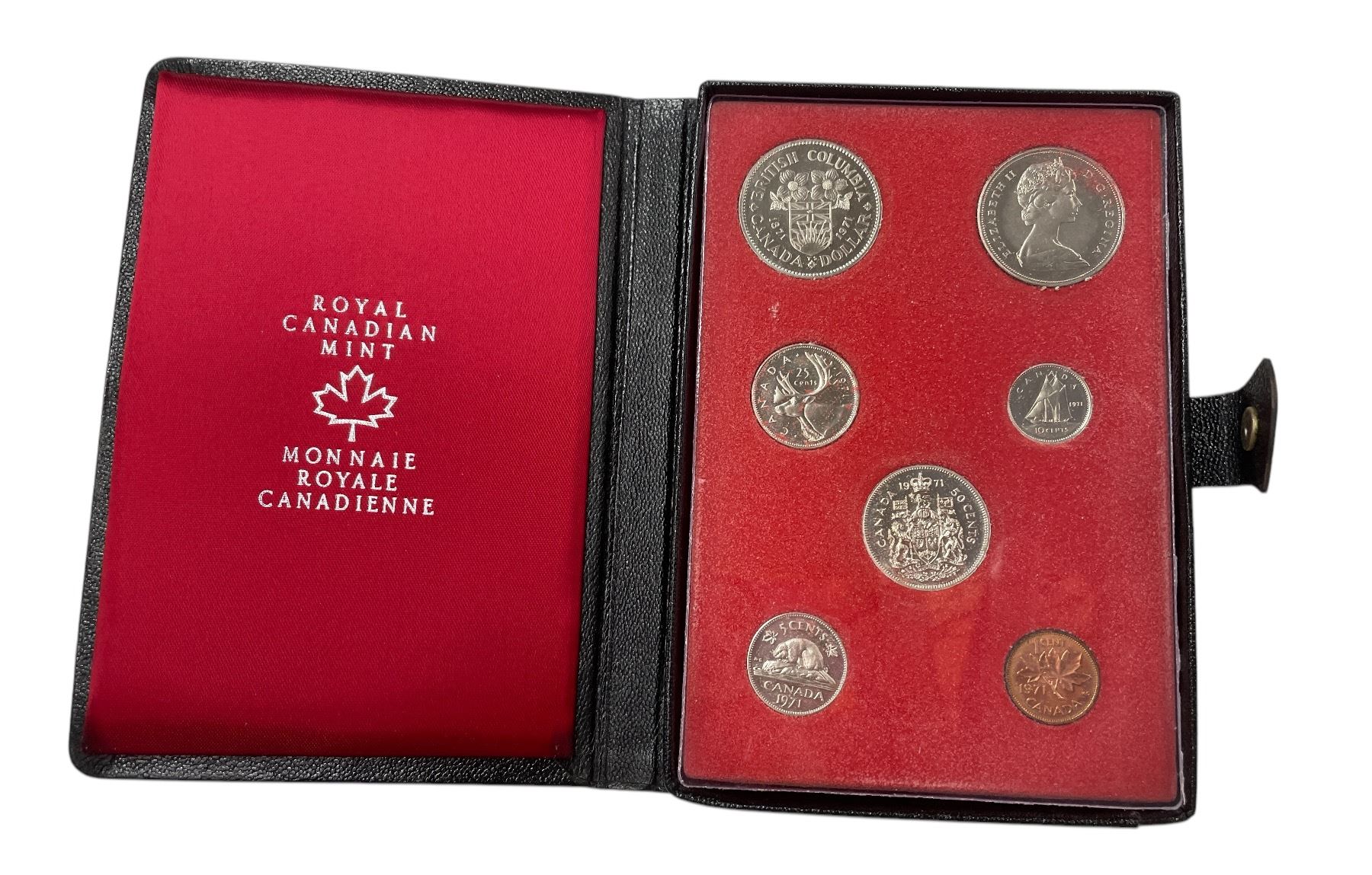 3 Sets Of Uncirculated 1971 Canadian Coin Sets: Dollar, 50 Cent, Quarter, Dime, Nickel, & Penny
