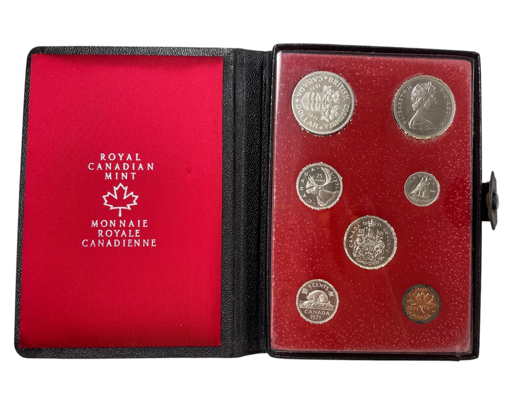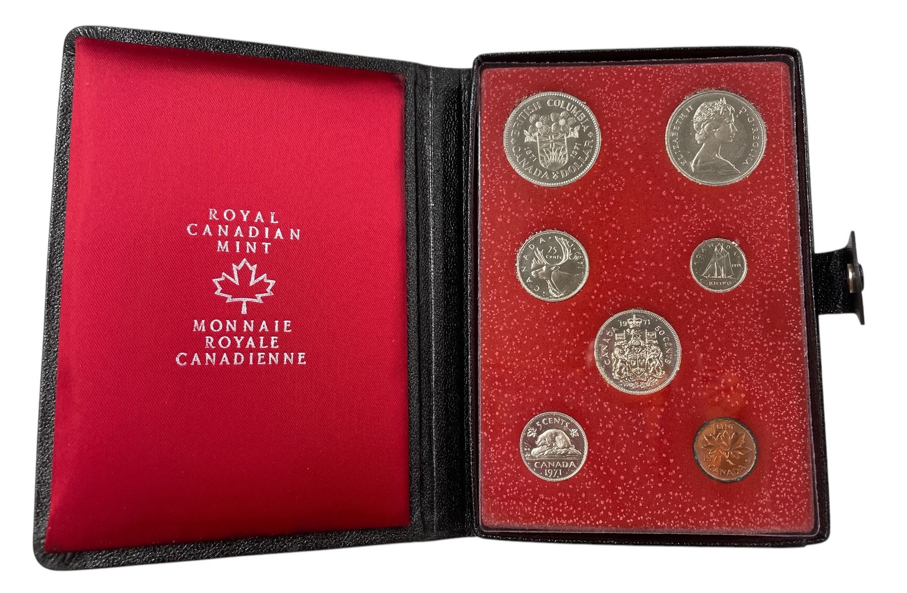 3 Sets Of Uncirculated 1971 Canadian Coin Sets: Dollar, 50 Cent, Quarter, Dime, Nickel, & Penny