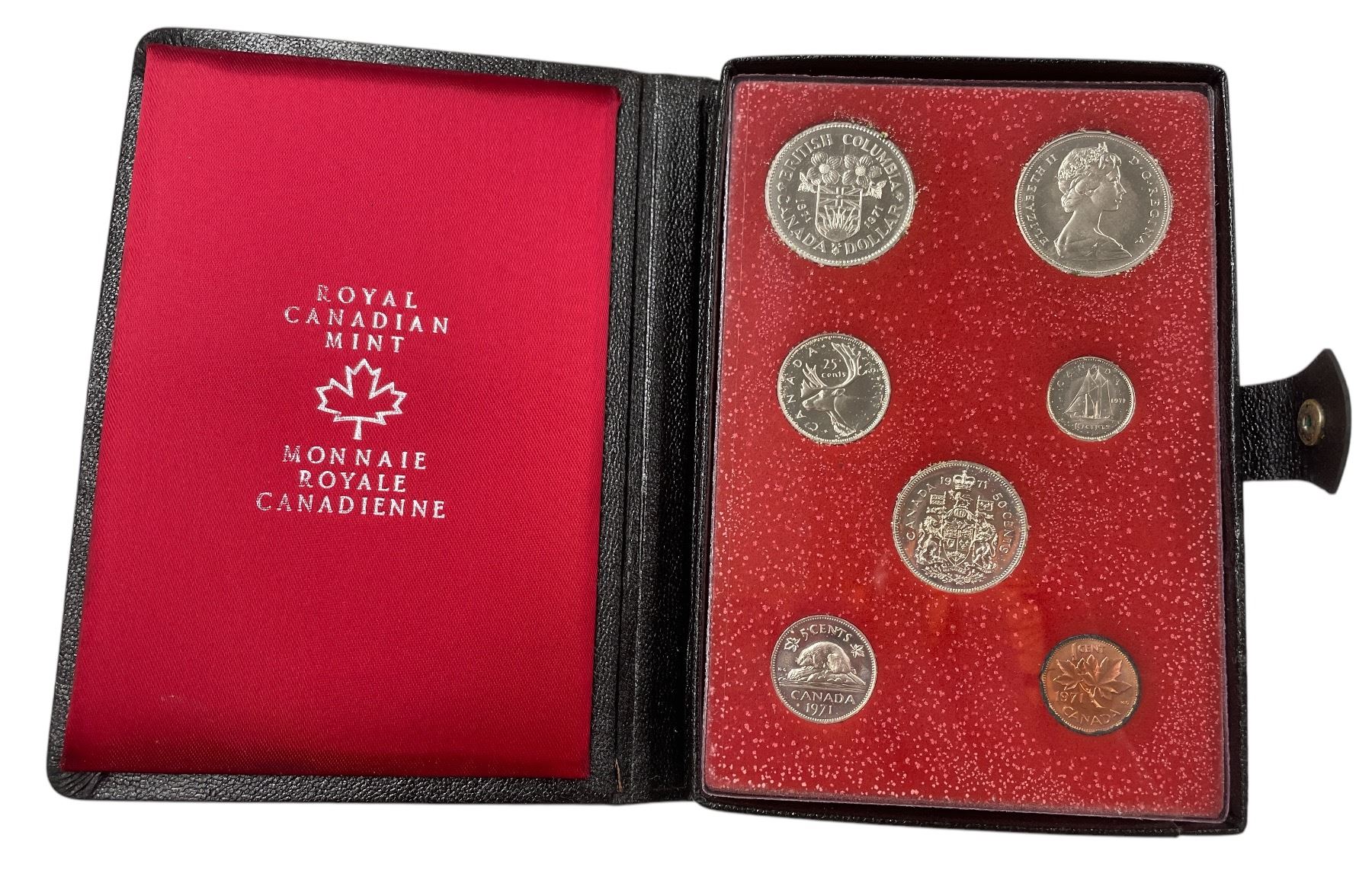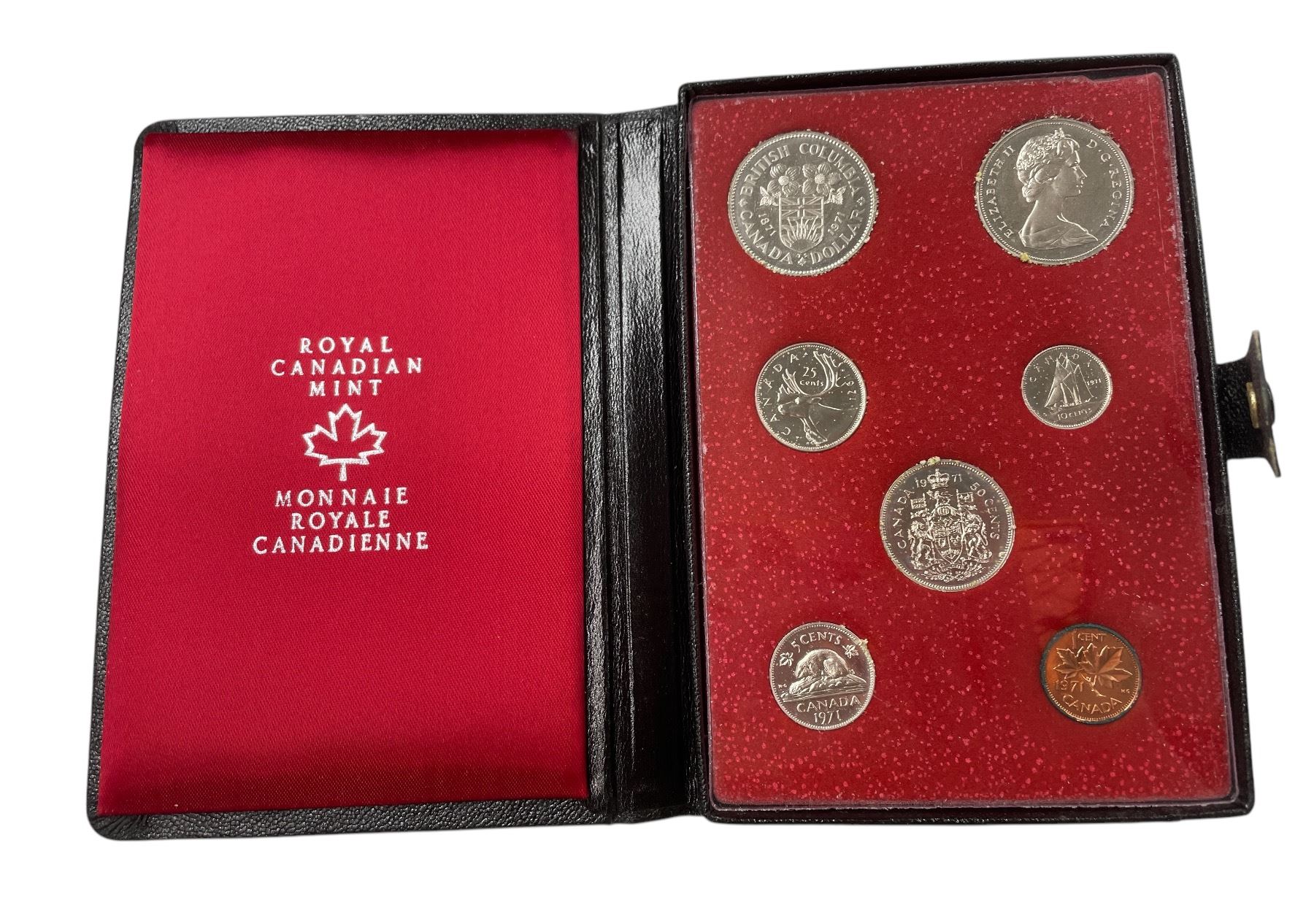3 Sets Of Uncirculated 1971 Canadian Coin Sets: Dollar, 50 Cent, Quarter, Dime, Nickel, & Penny