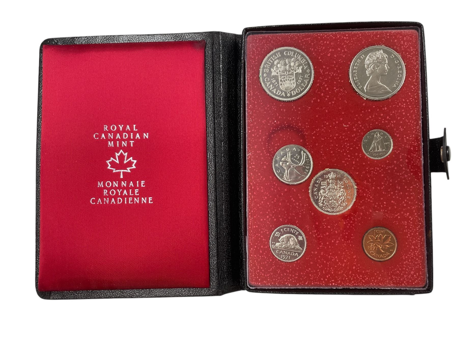 3 Sets Of Uncirculated 1971 Canadian Coin Sets: Dollar, 50 Cent, Quarter, Dime, Nickel, & Penny