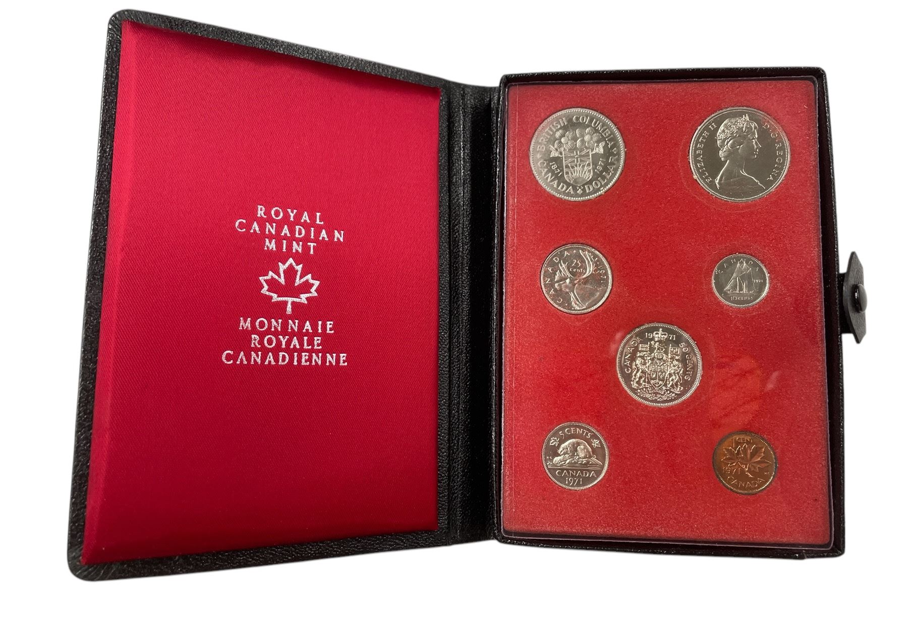 3 Sets Of Uncirculated 1971 Canadian Coin Sets: Dollar, 50 Cent, Quarter, Dime, Nickel, & Penny