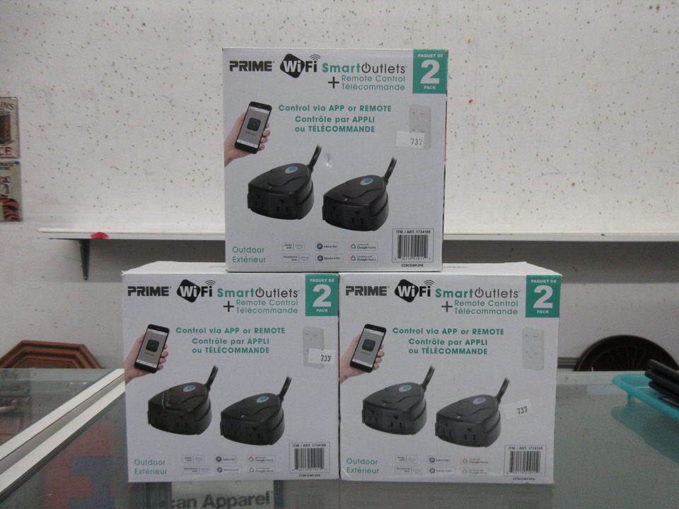 3 Sets of 2 Prime Outdoor WiFi Smart Outlets