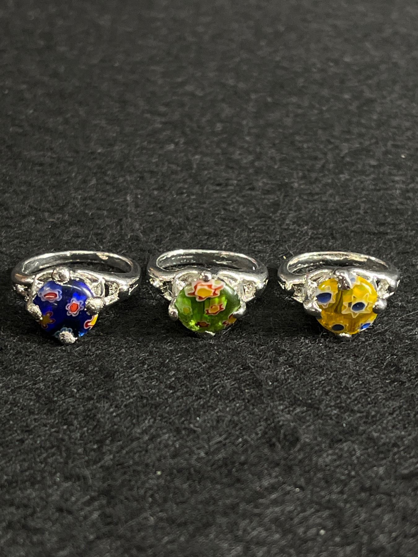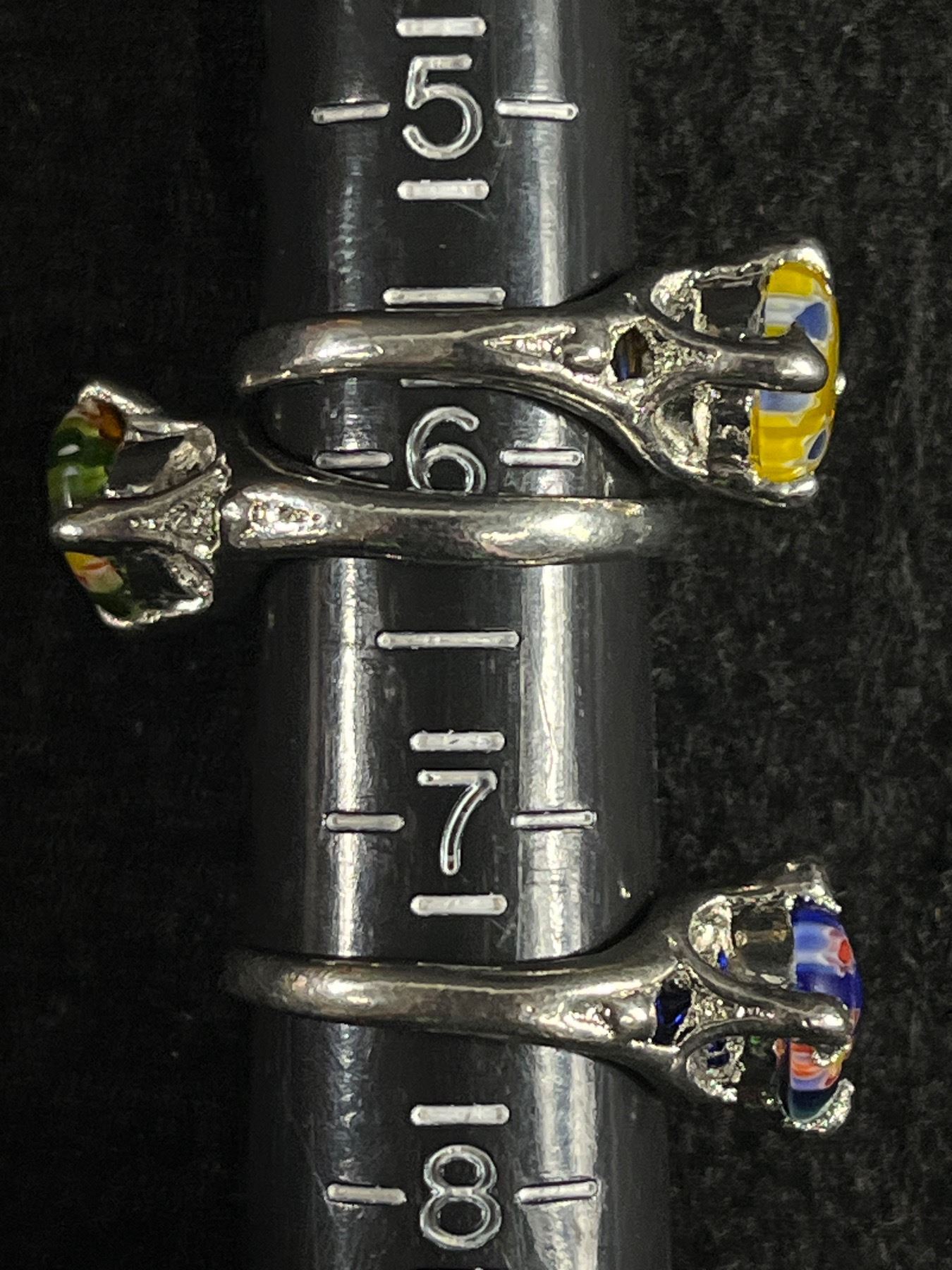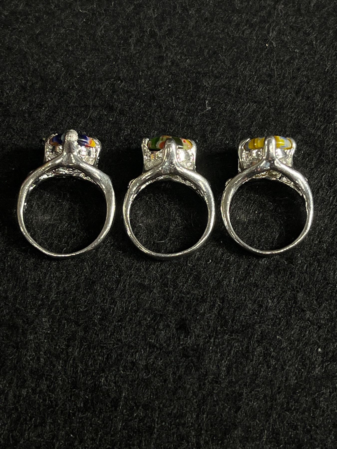 3 Silver with Milifori Design Art Glass Stones Rings. 2 Size 6 1 Size 7
