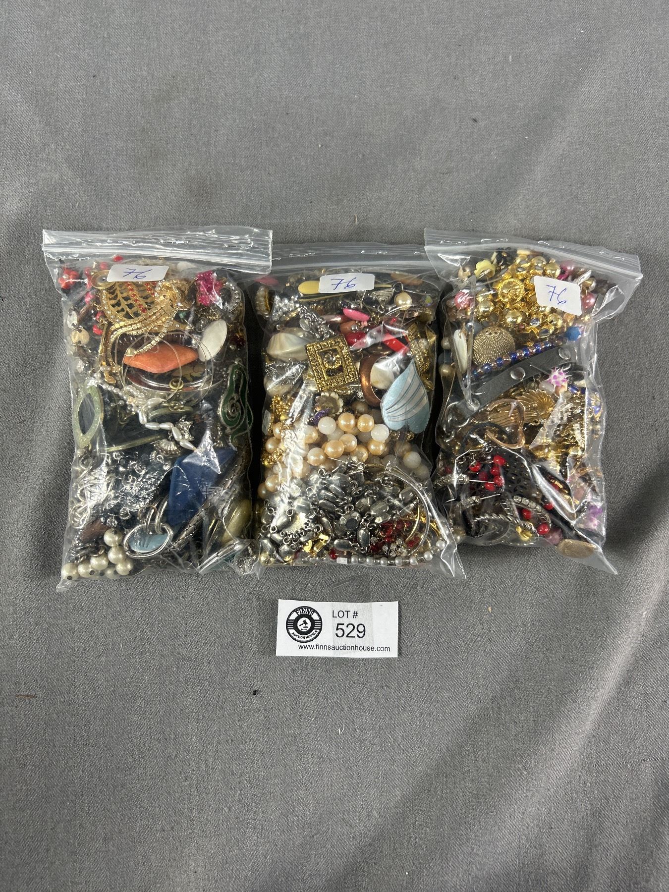 3 Small Bags w/ Misc Costume Jewelry Etc