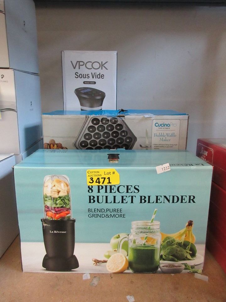 8 Piece bullet blender, bubble waffle maker & sous vide.