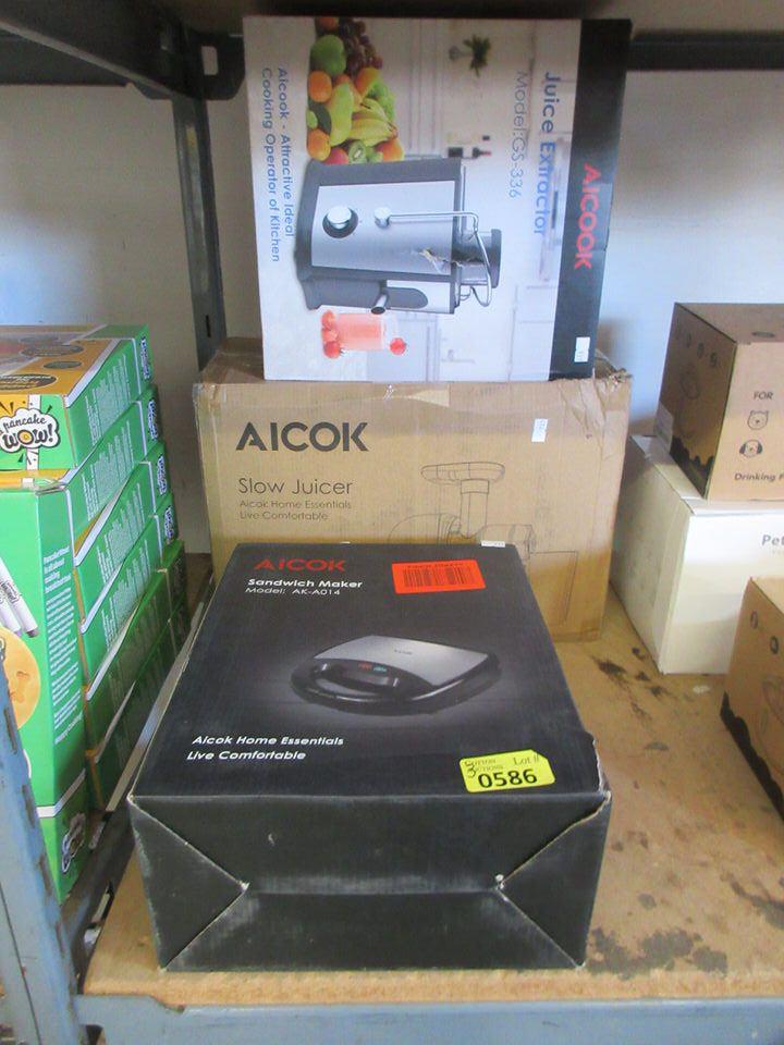 Sandwich maker, slow juicer and juice extractor. Open box.
