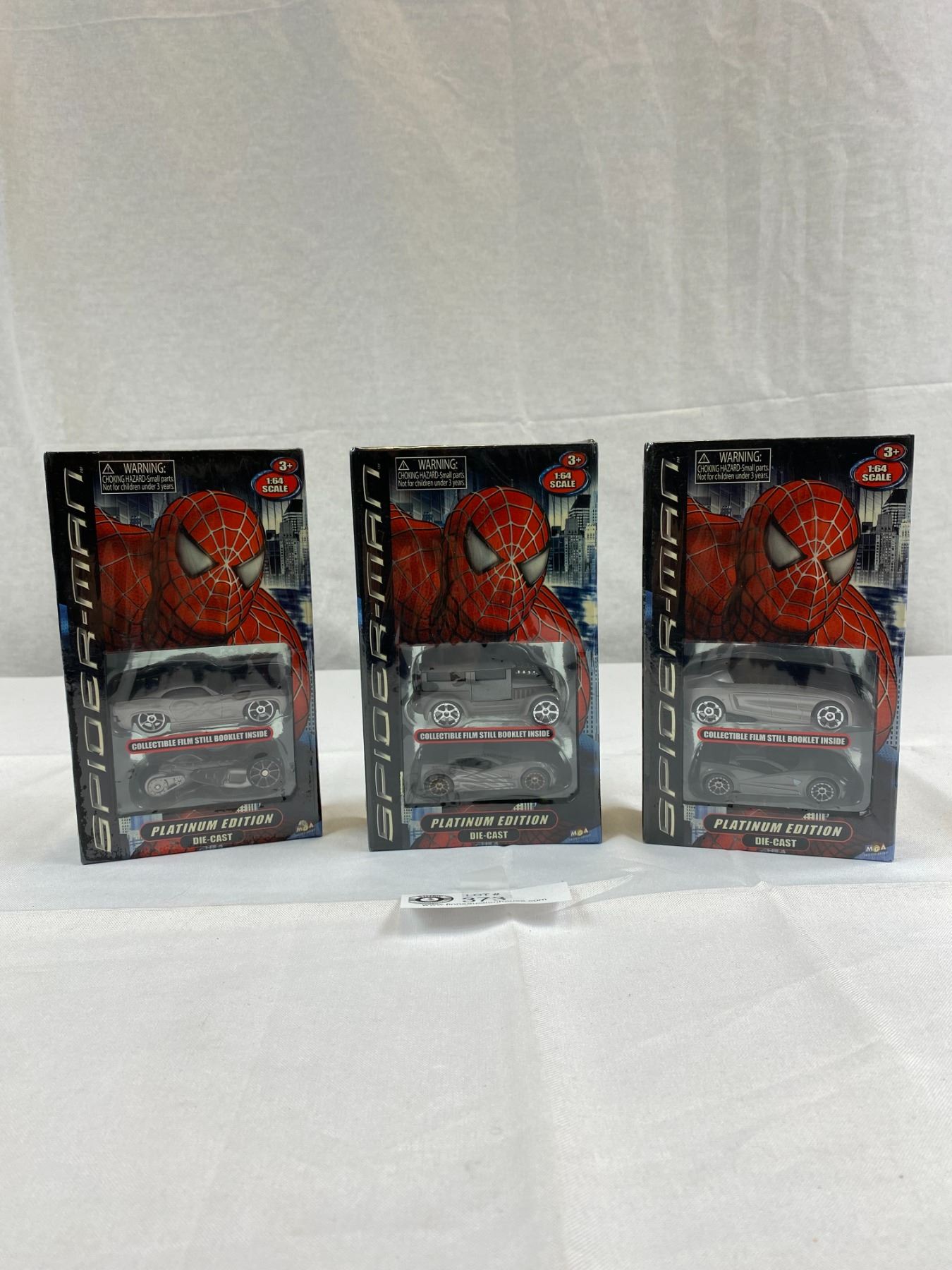 3 Spiderman Platinum Edition Diecast Cars, Still Sealed In Box