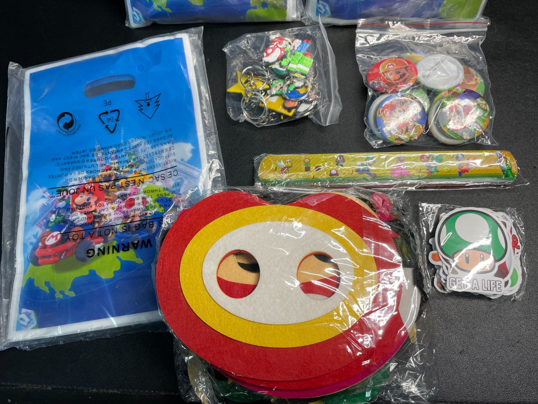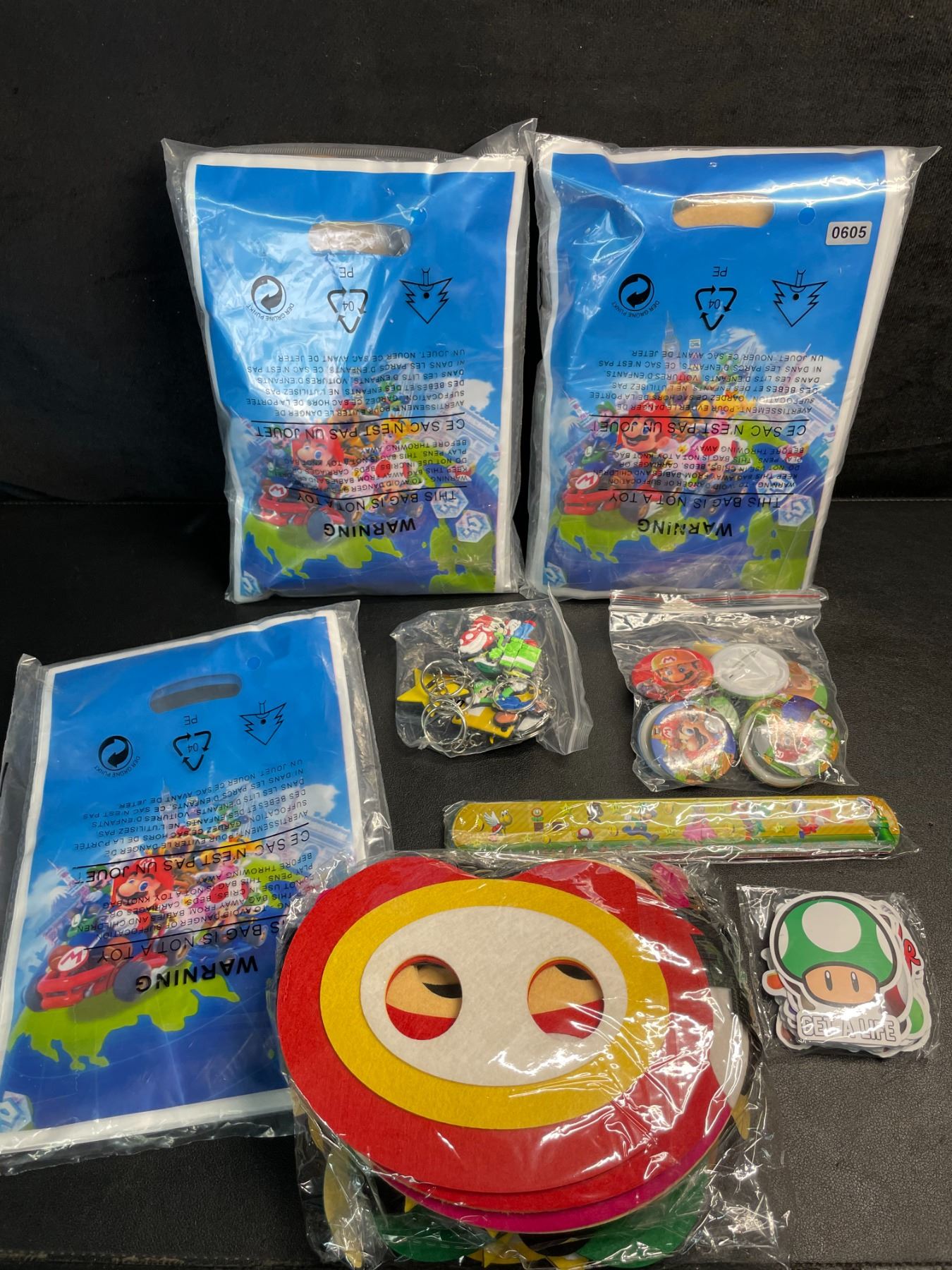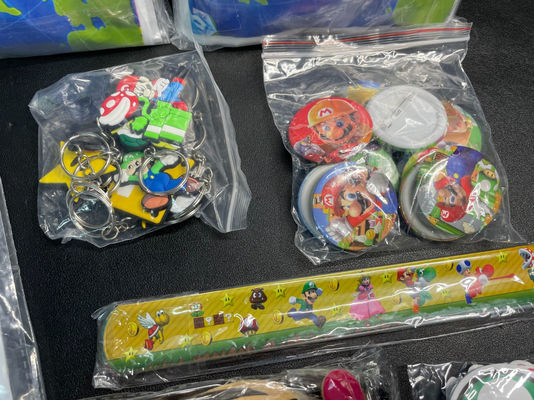 3 Super Mario Party Favor/Goodie Bag Sets - Includes Party Bags, Keychains, Stickers, Pins etc - New