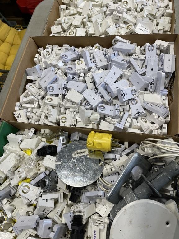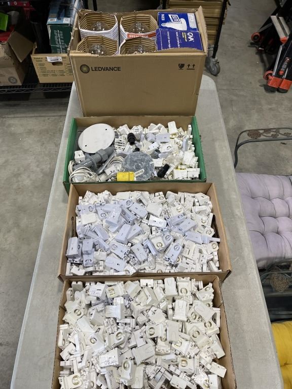 3 TRAYS OF NEW ELECTRICAL BULB CONNECTORS, METAL HALLIDE BULBS ETC