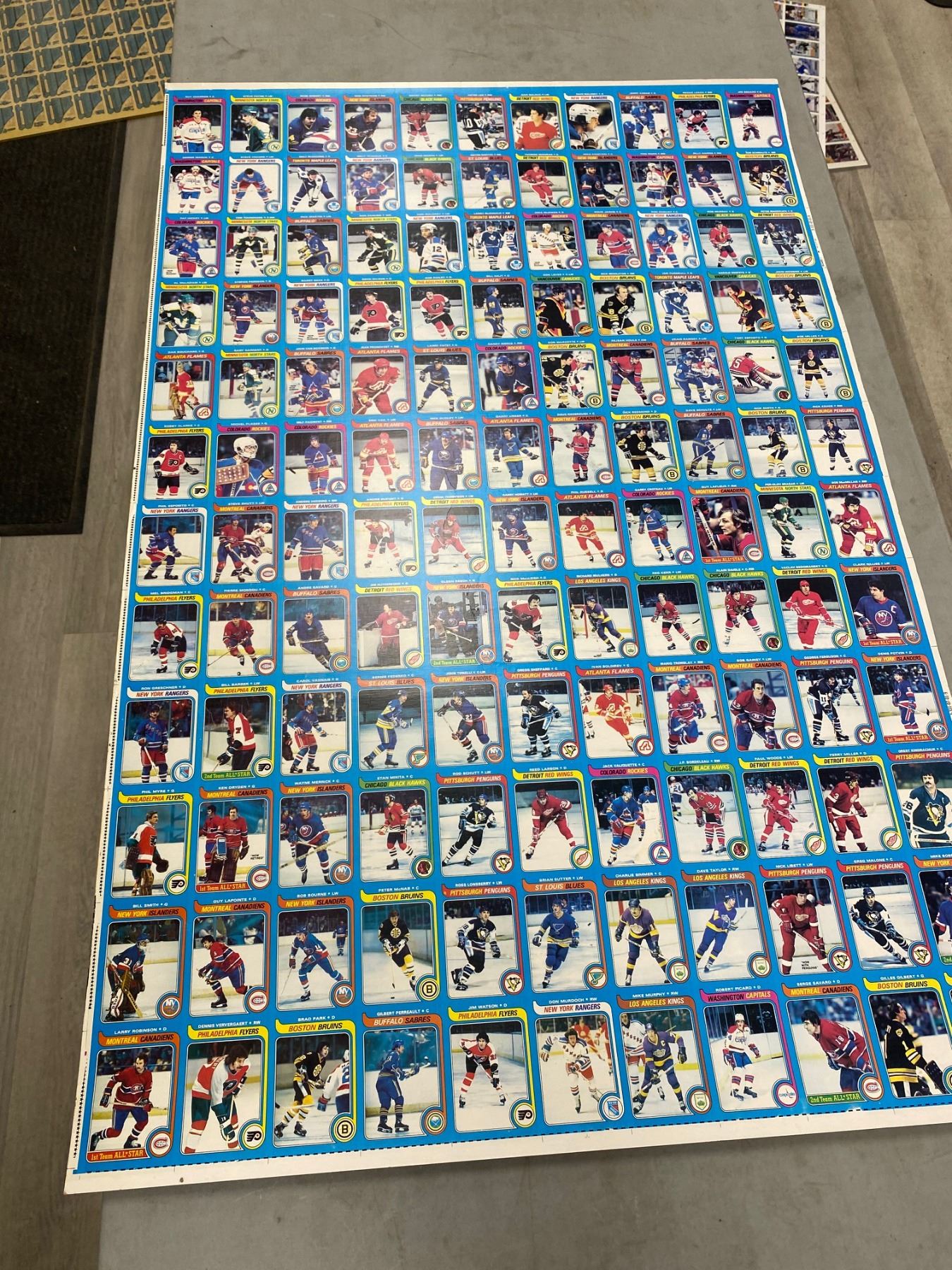 3 UNCUT SHEETS OF 1979-1980 O-PEE-CHEE HOCKEY CARDS INCLUDING WAYNE GRETZKY ROOKIE CARD