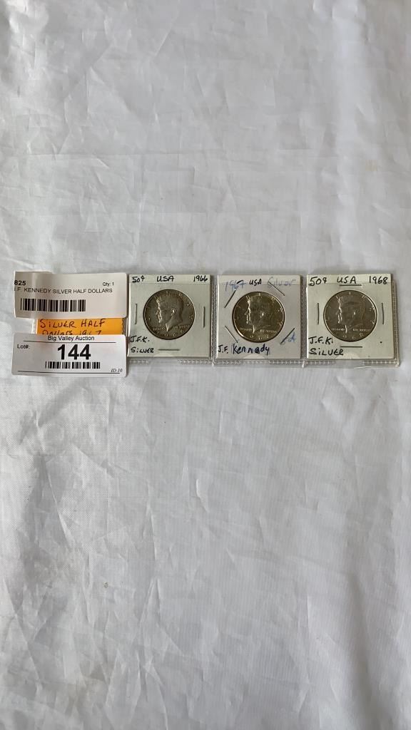 3 USA J.F. KENNEDY SILVER HALF DOLLARS 1967, 1968, 1969