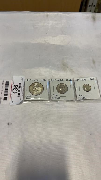 3 USA SILVER COINS 50 CENT, 25 CENT, 10 CENT - ALL .900 SILVER