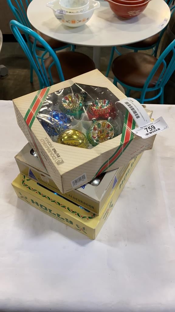 3 VINTAGE CHRISTMAS BALL ORNAMENTS SETS