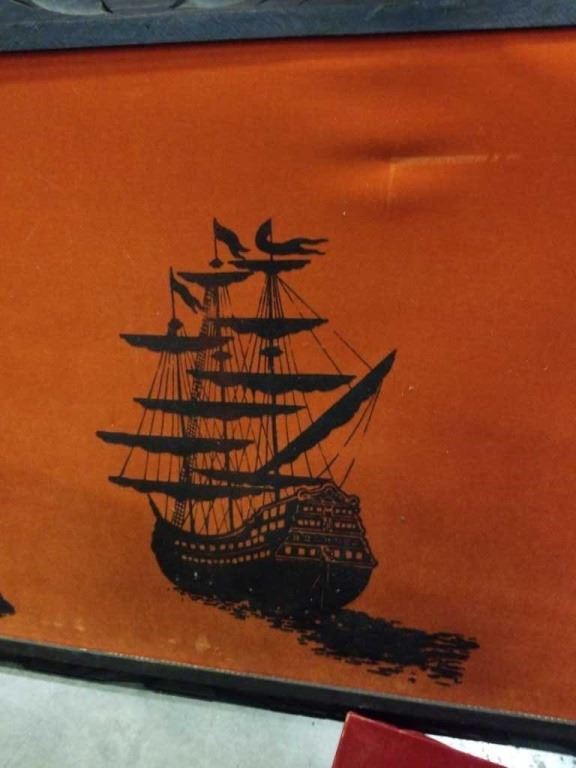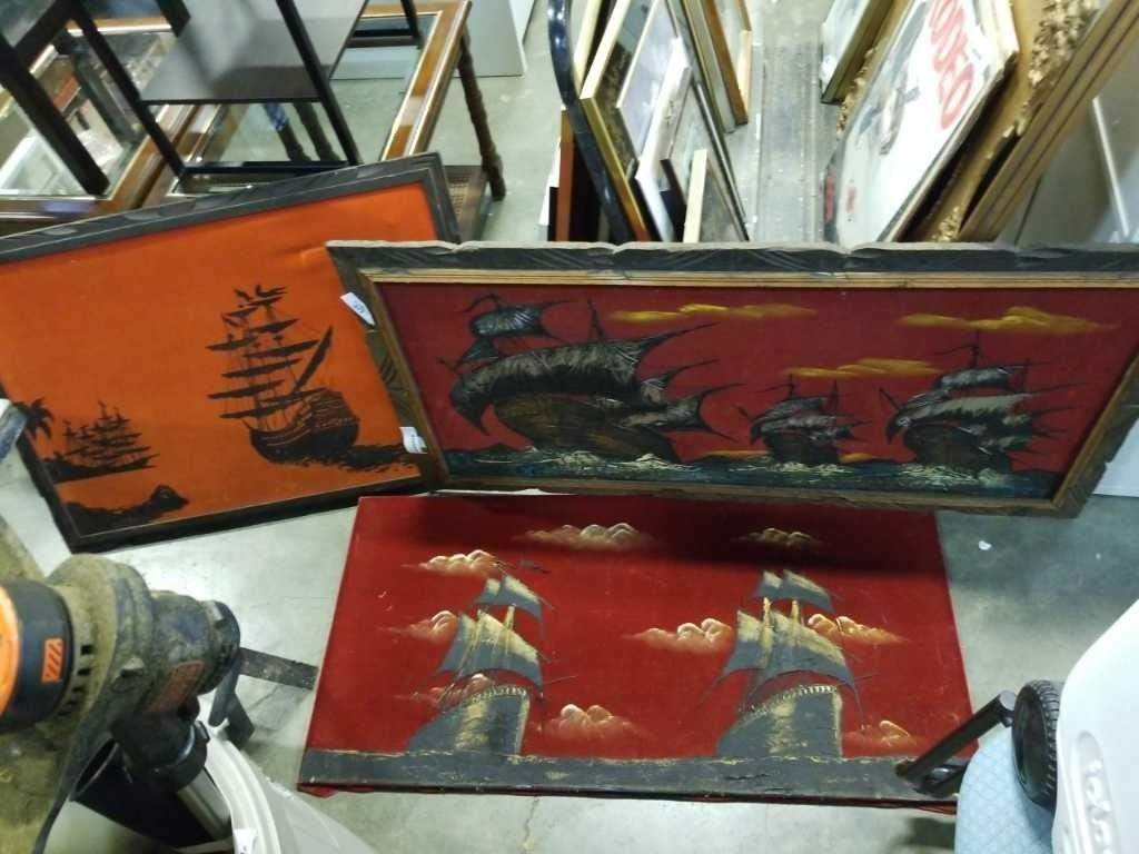 3 VINTAGE SHIP PAINTINGS ON FABRIC