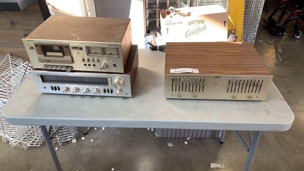 3 VINTAGE STEREO COMPONENTS HITATCHI D-230, REALISTIC STA-430 AND AUDIO REFLEX EQ-1