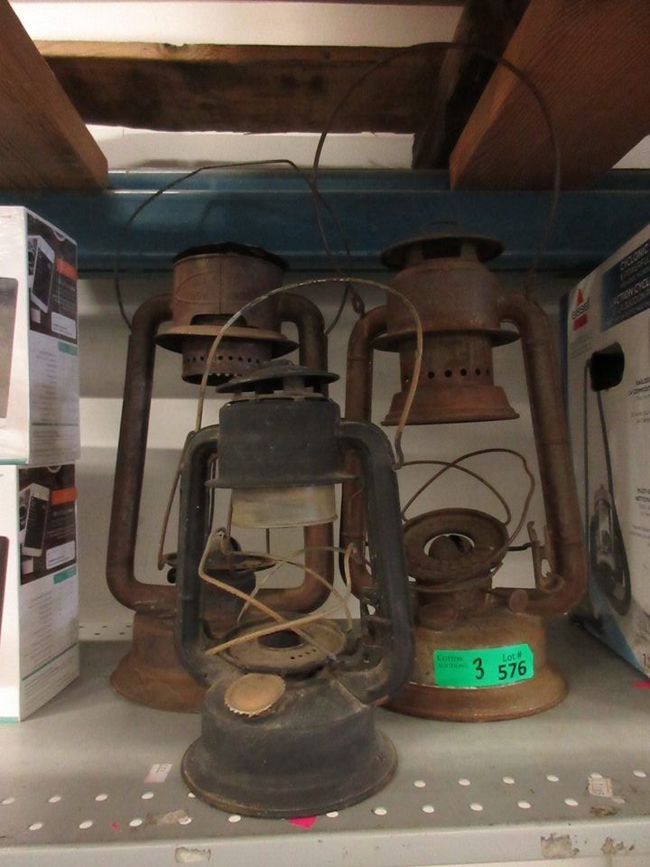 3 Vintage Barn Lamps - No Glass