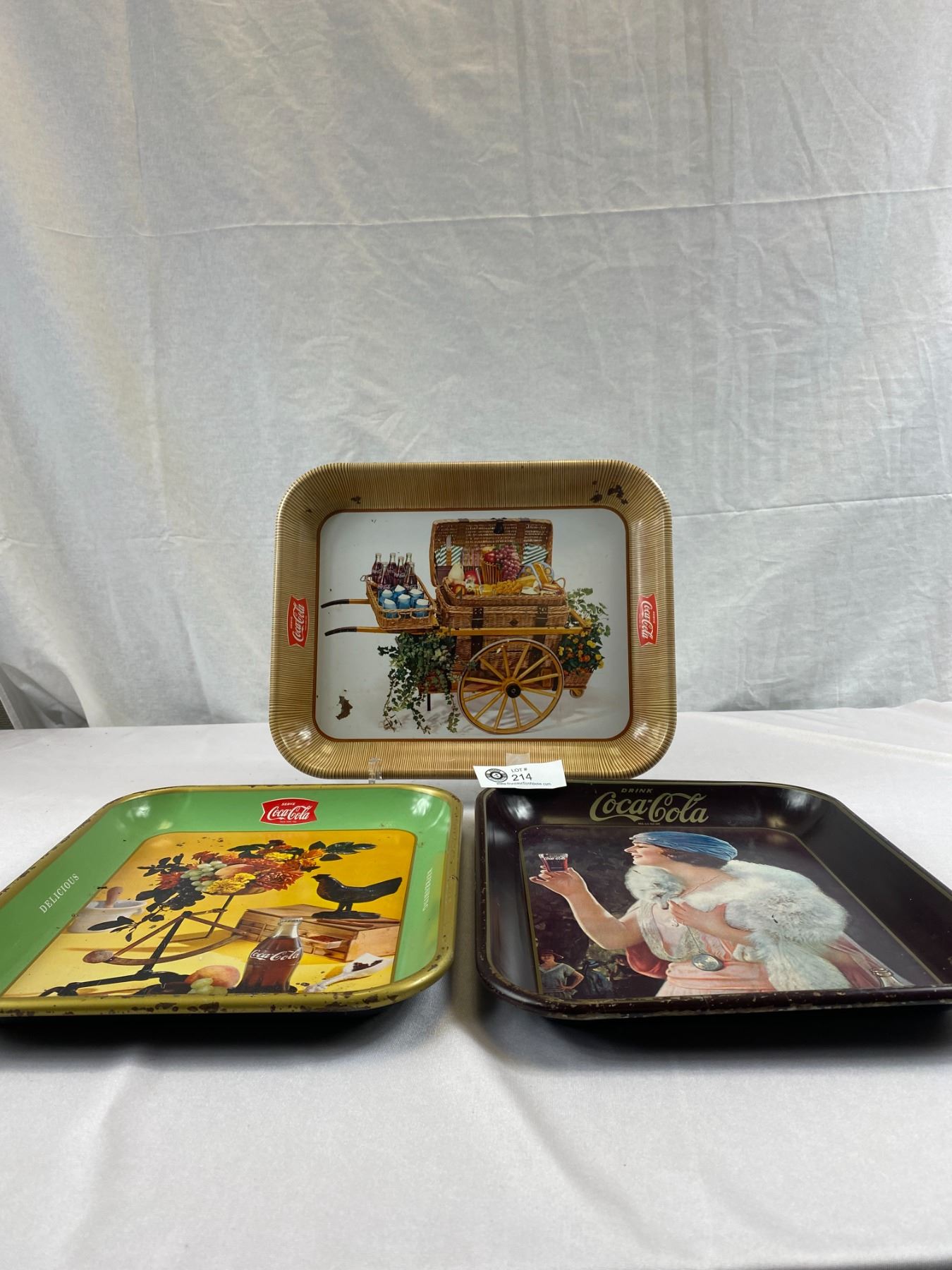 3 Vintage Coca-Cola Trays, Nice Natural Patina