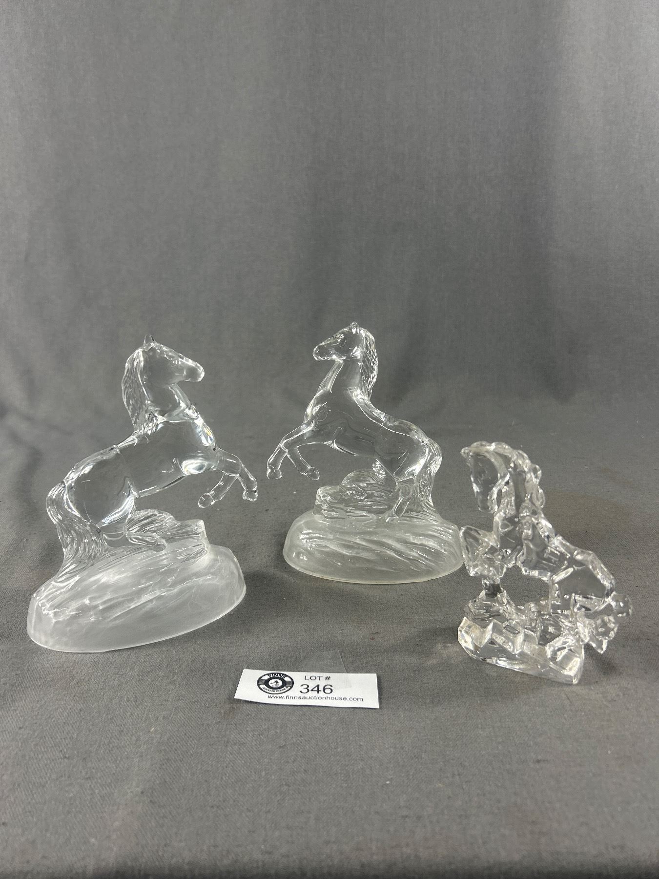 3 Vintage Crystal Horse Figurines - Approx. 4" & 6" H