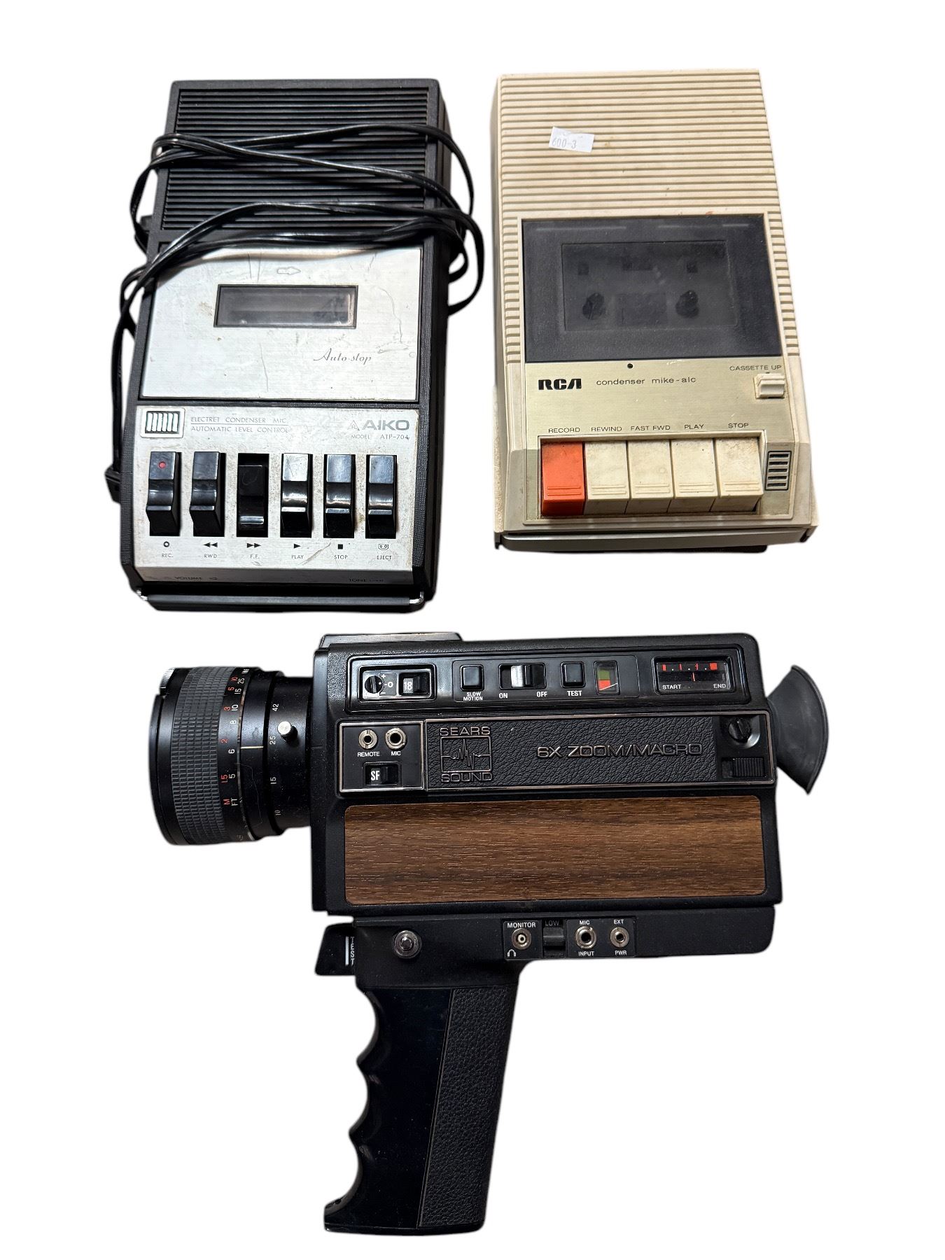 3 Vintage Electronics: 2 Tape Recorders (RCA & AIKO) & Sears 199/S Video Camera