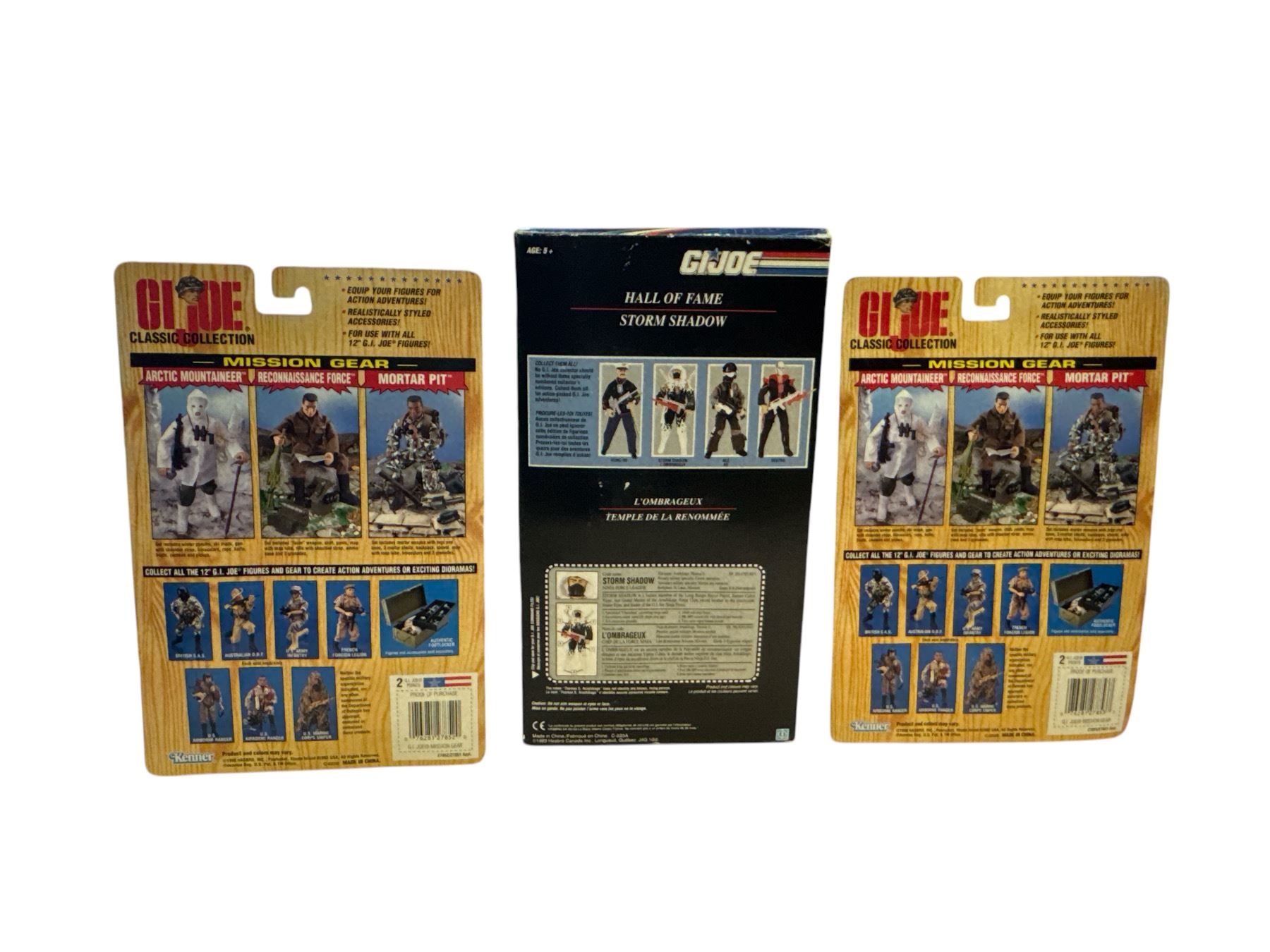 3 Vintage G.I. Joe Toy Collectibles: Reconnaissance Force Mission Gear, Arctic Mountaineer Gear, & Storm Shadow