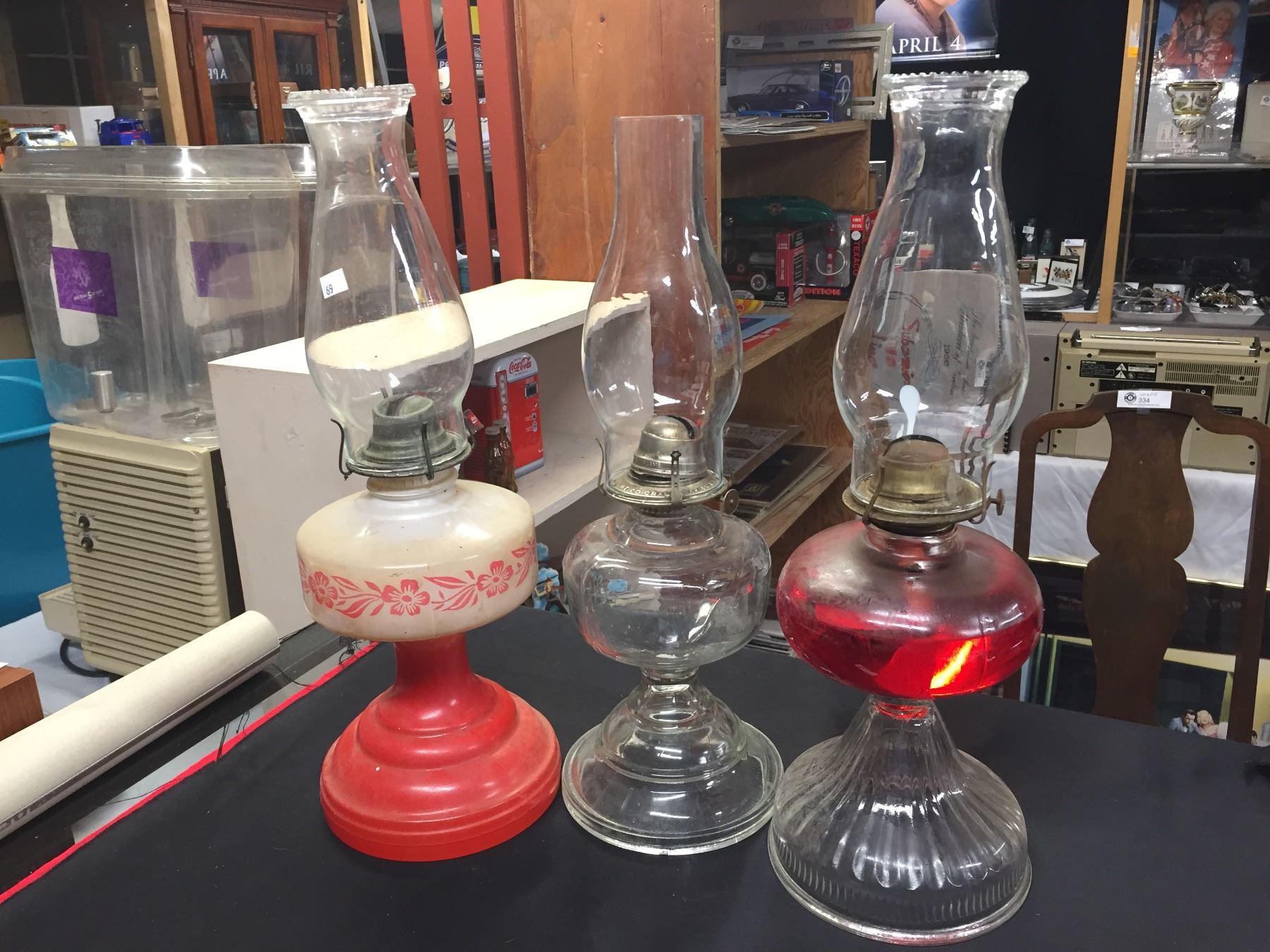 3 Vintage Glass Kerosene Oil Lamps. *LOCAL PICK UP ONLY*