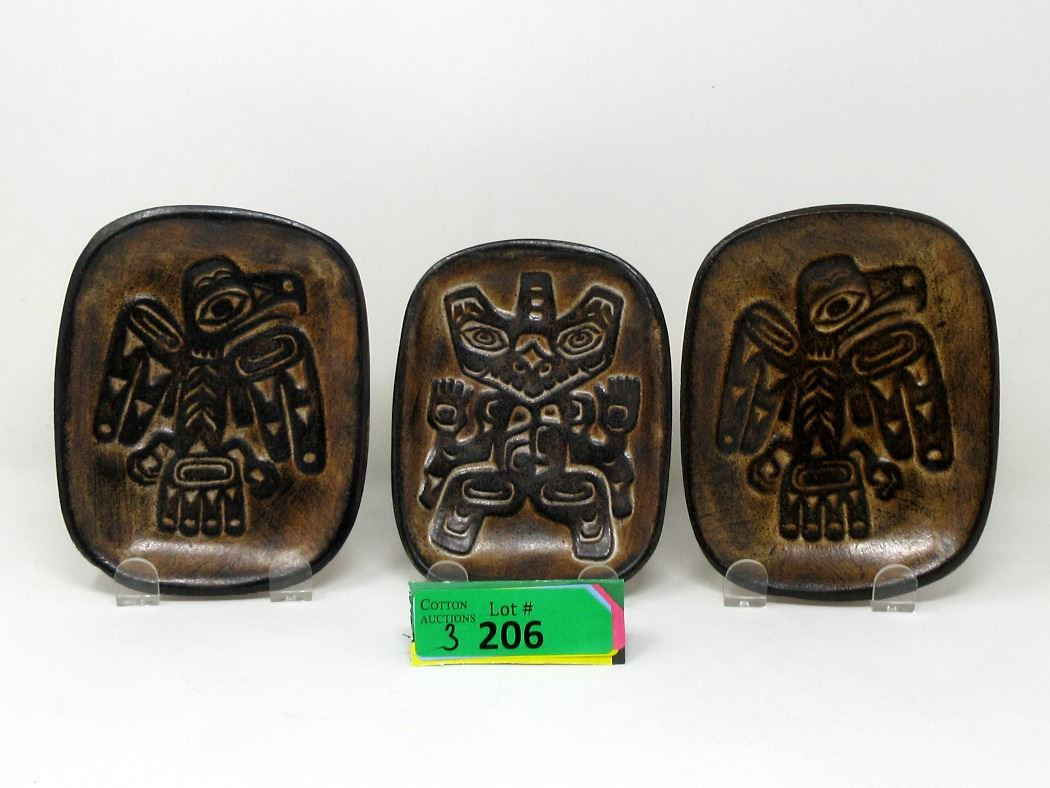 Haida Bear and 2 Haida Eagle. Each measures 7" x 5.5".