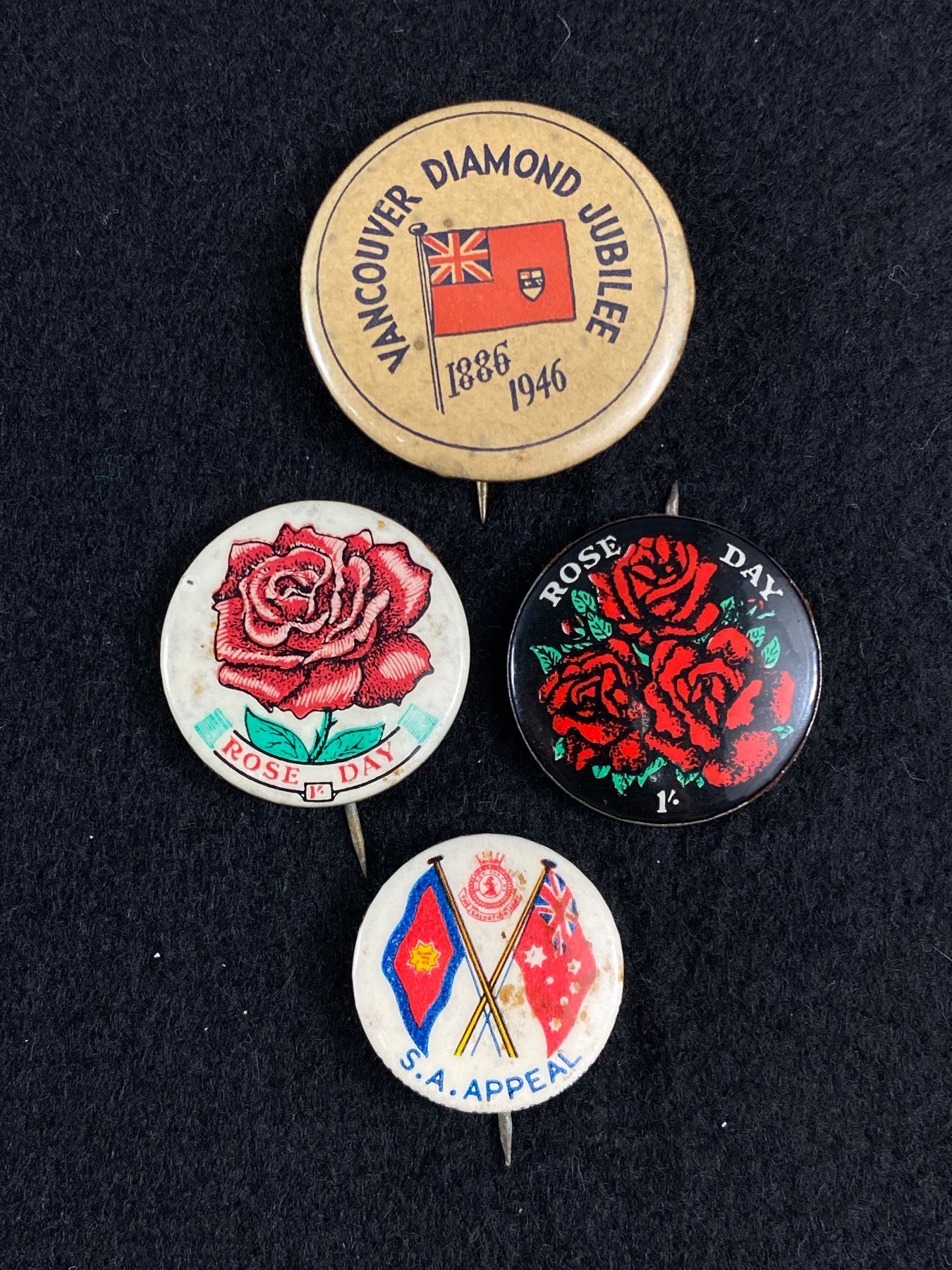 3 Vintage Pins/Badges, 1946 Vancouver Diamond Jubizer Badge
