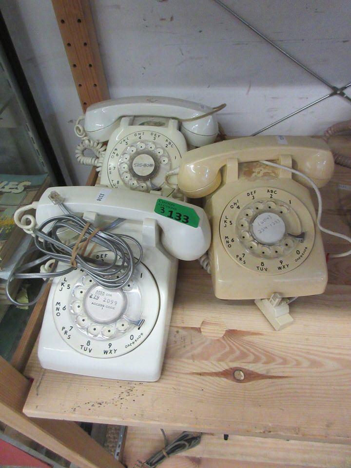 3 Vintage Rotary Dial Telephones - 1 Yellow & 2 White