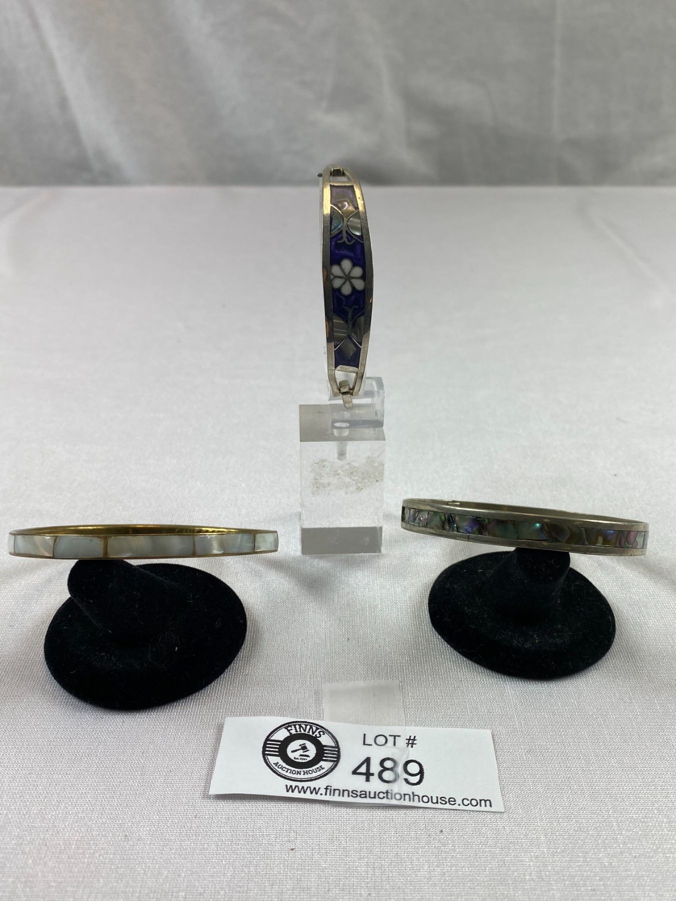 3 Vintage Shell Inlaid Bangles/Bracelets