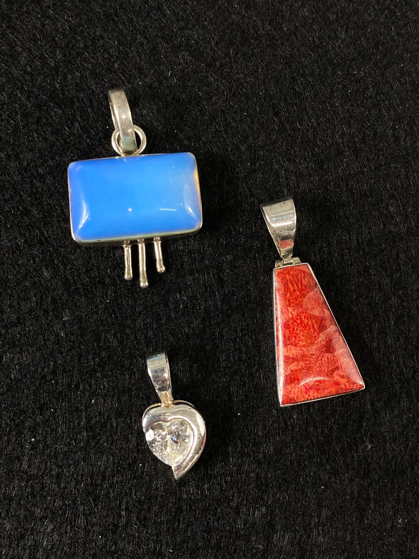 3 Vintage Sterling Silver Pendants 13.8 Grams Opaline Opalite, CZ, Red Stone - All Marked & Tested