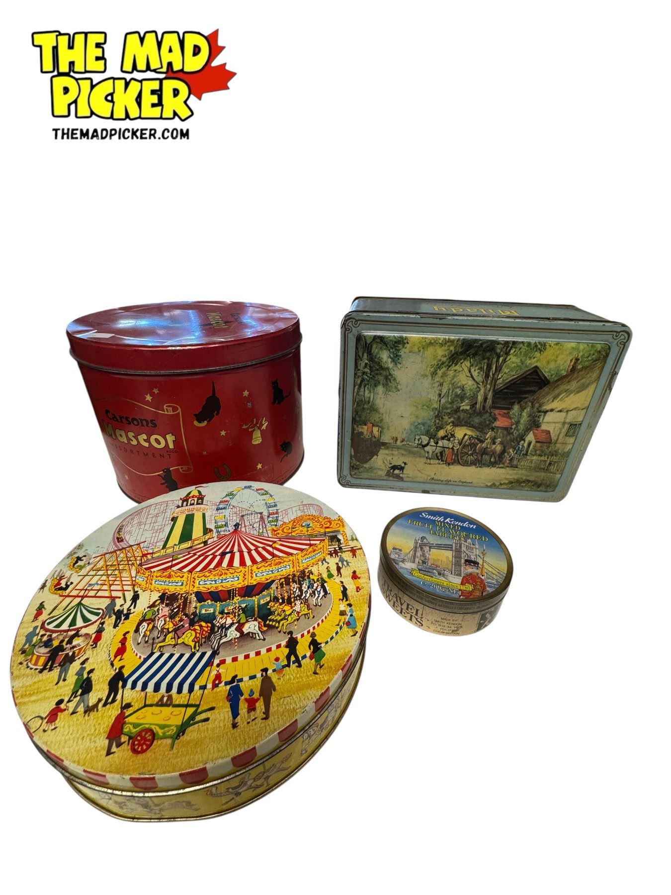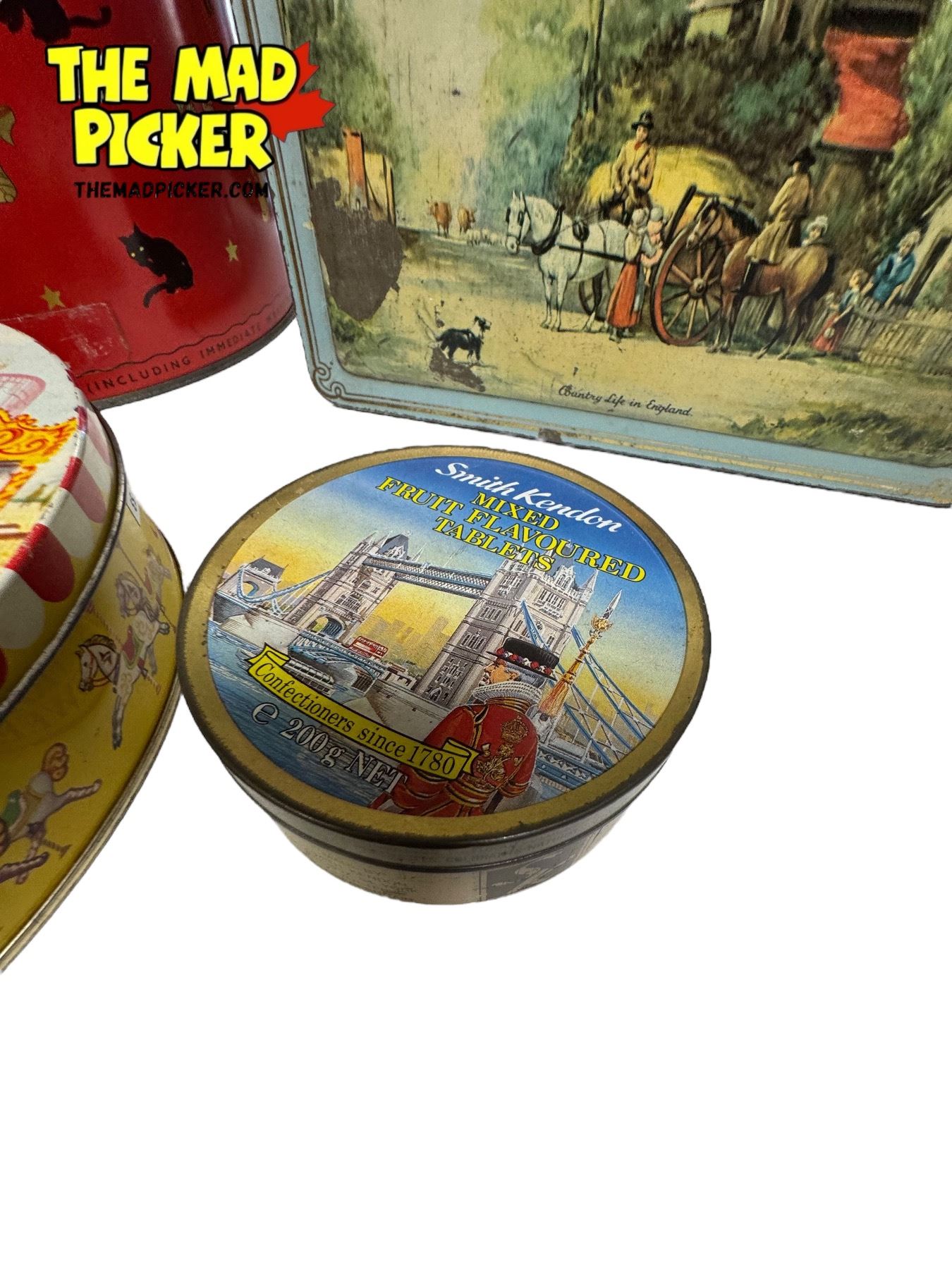 3 Vintage Tins: Peak Frean, Milady, Carsons Mascot, & Smith Kendon