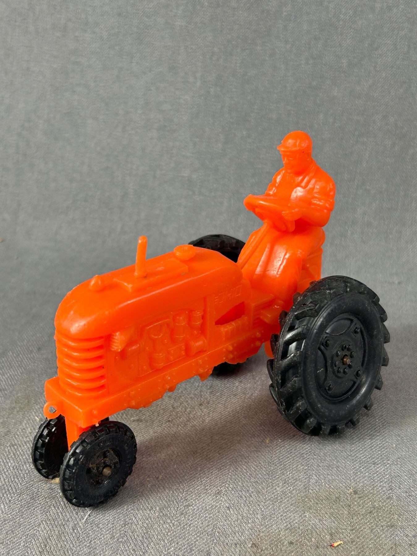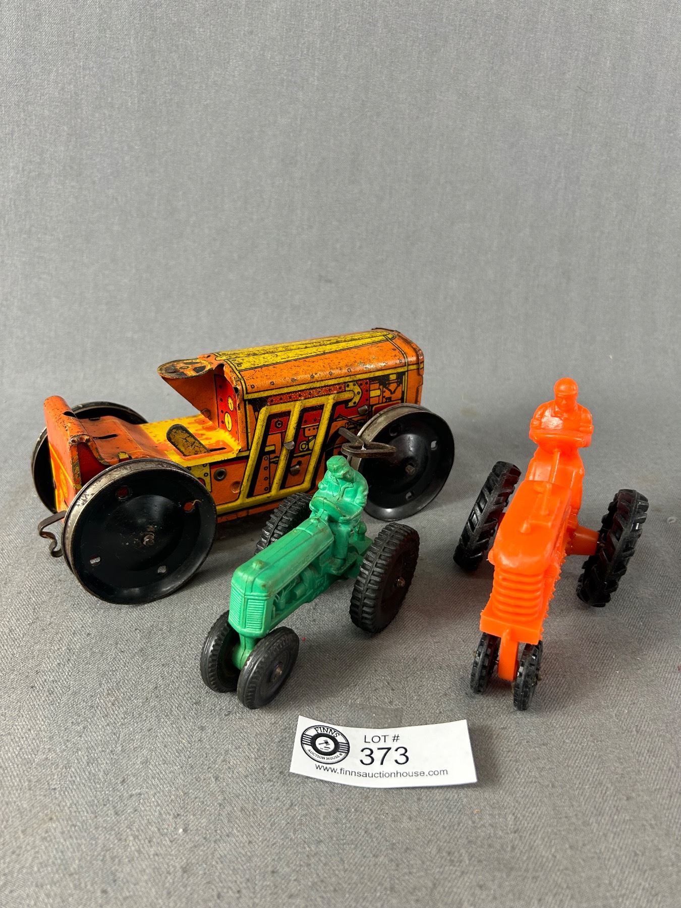 3 Vintage Toy Tractors - MAR Toys 7.5"L Tin & 2 Other Plastic
