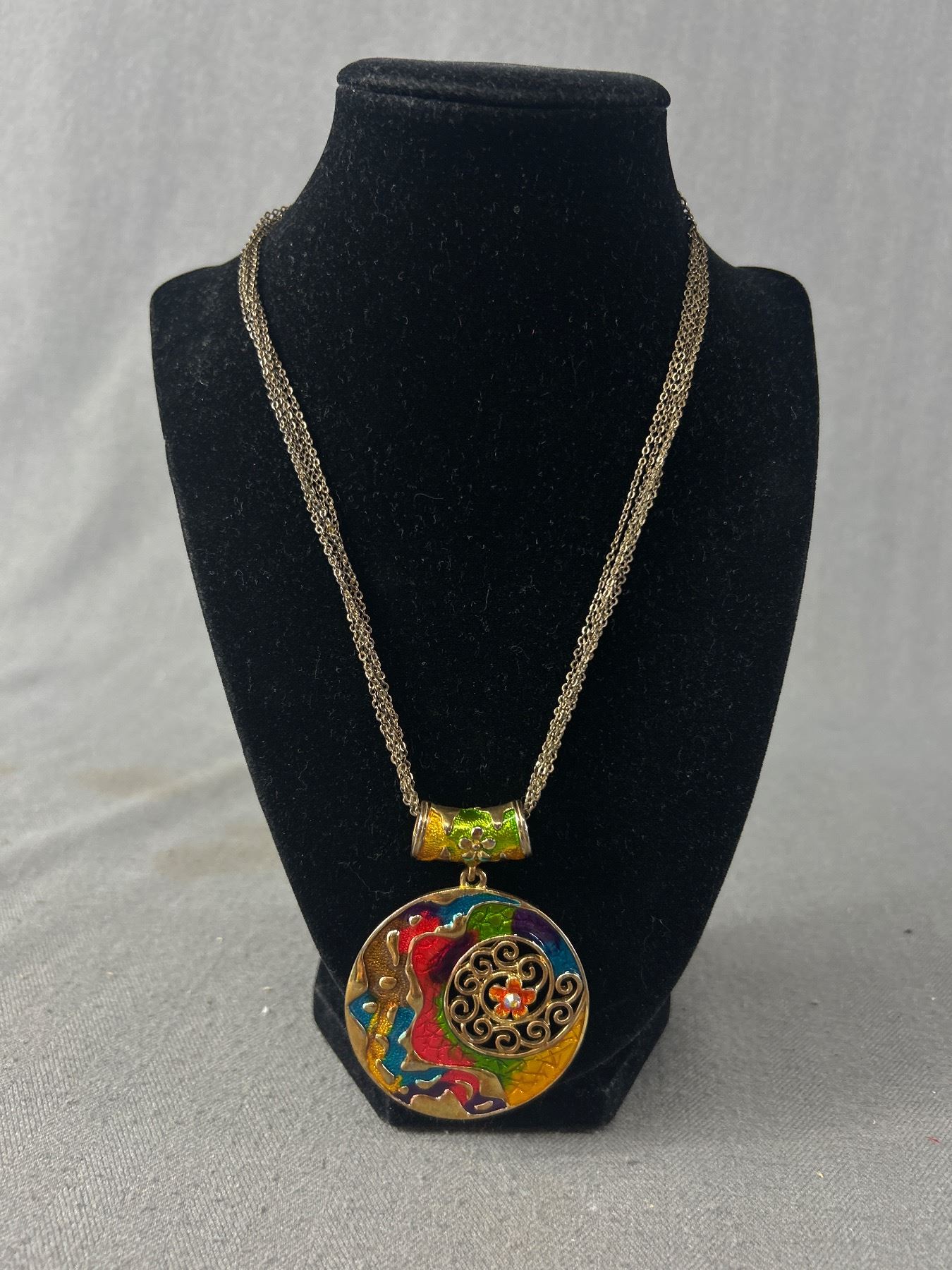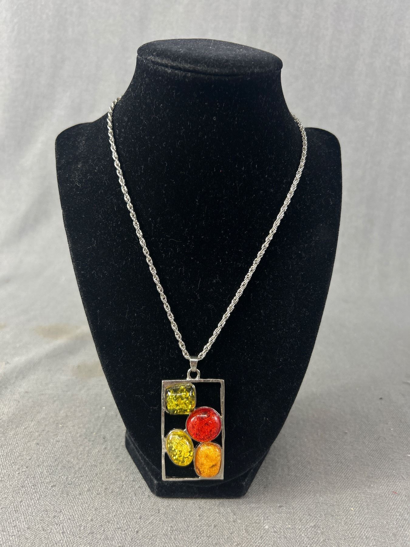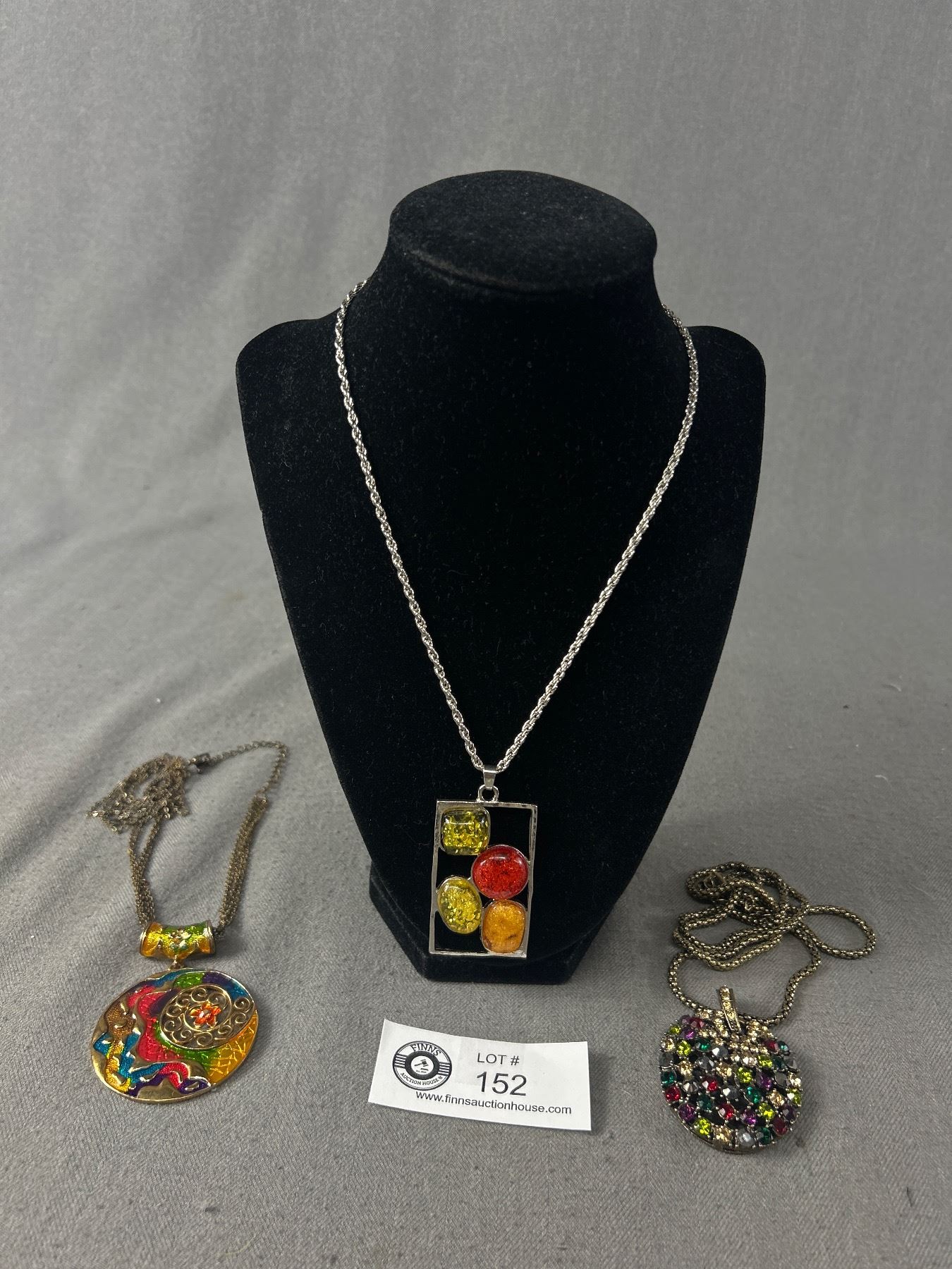 3 Vintage Vibrant Coloured Pendant Necklaces. 18" L (2) & 28" L