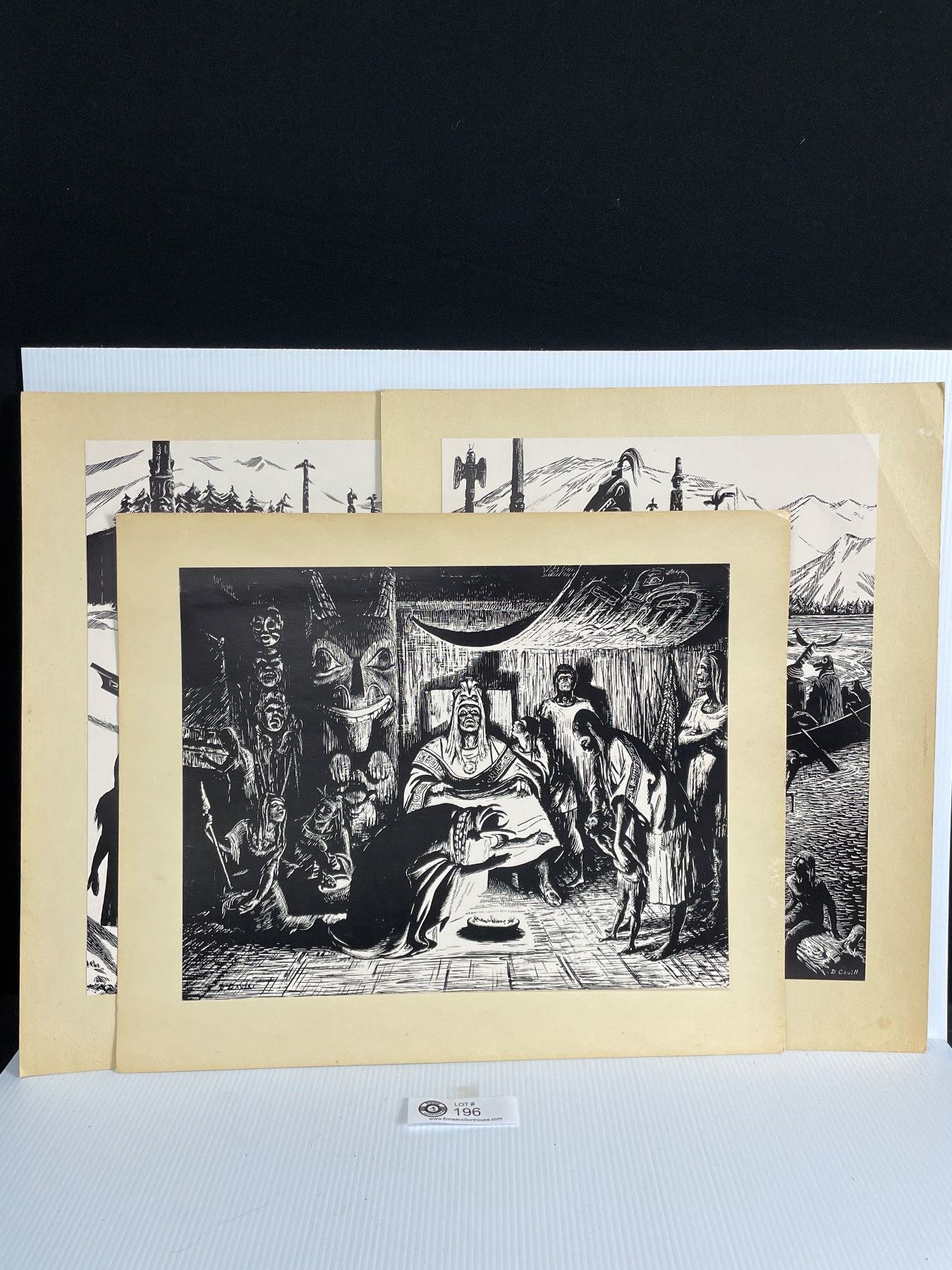 3 Vintage Victoria Academy Of Arts Native Prints. Approx. 14" x 17"