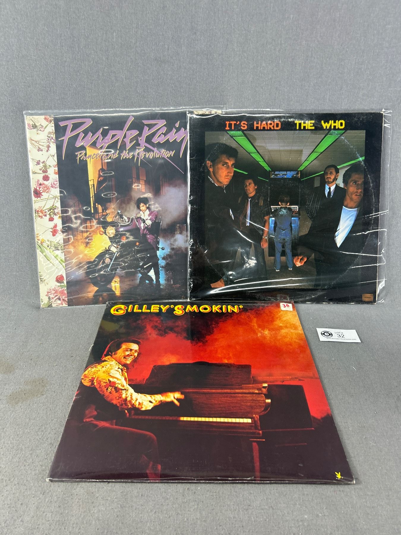 3 Vintage Vinyl Records - Prince: Purple Rain, The Who:It's Hard & Gilley' Smokin' (Various Artists)