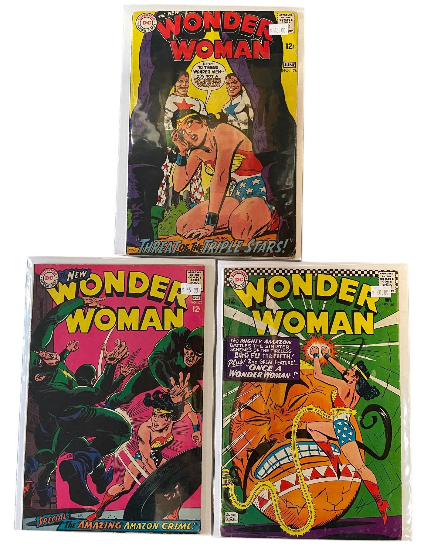 3 Vintage Wonder Woman Comic Books: June No.176, Oct No.172, & Nov No.166