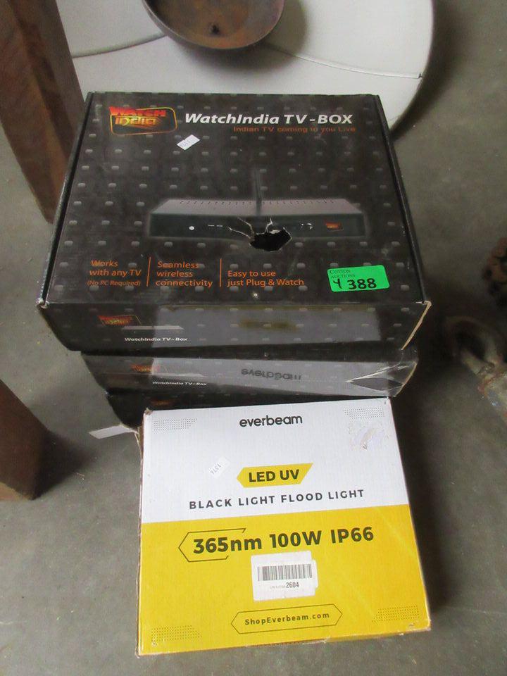 3 Watch India TV Boxes & 1 Black Light Flood Light