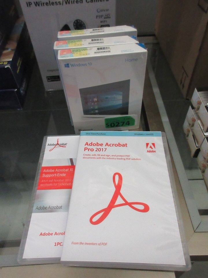 The Adobe are used and the Windows 10 are new in sealed packages.