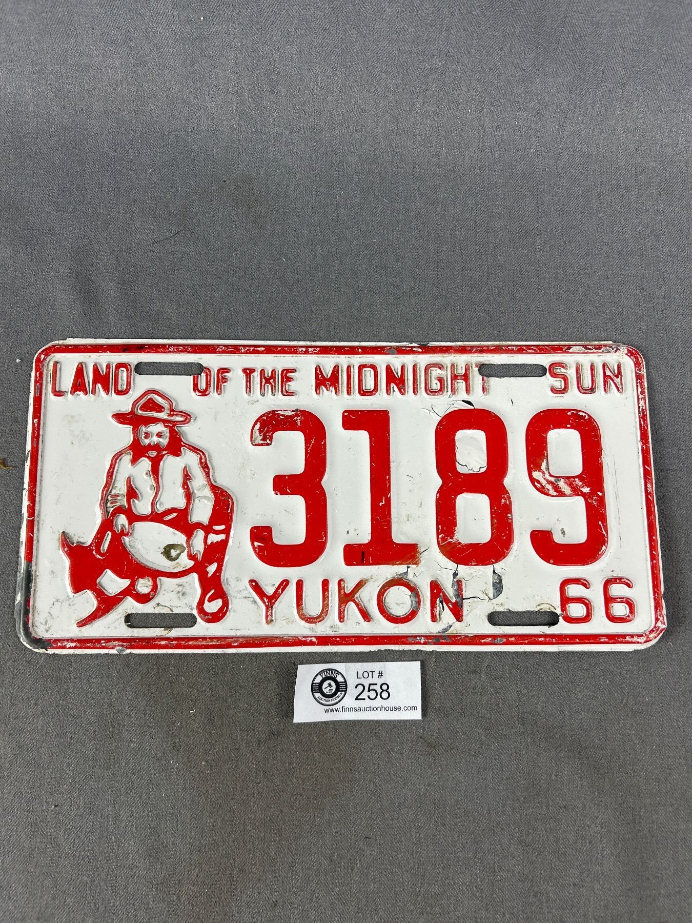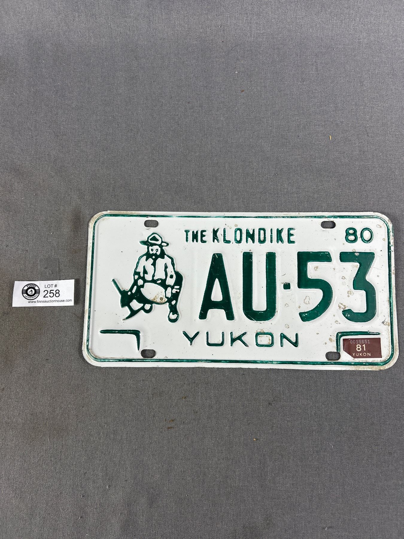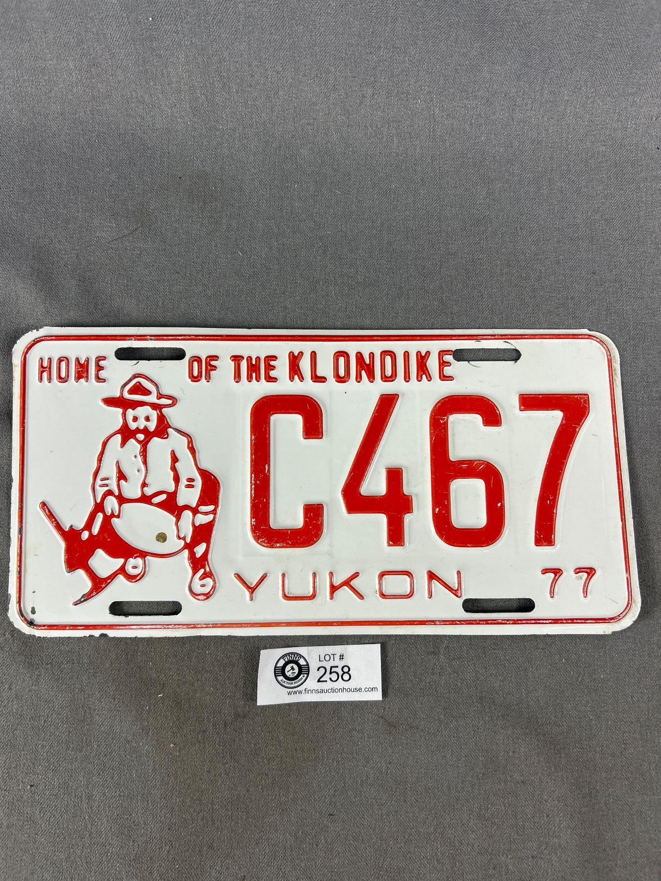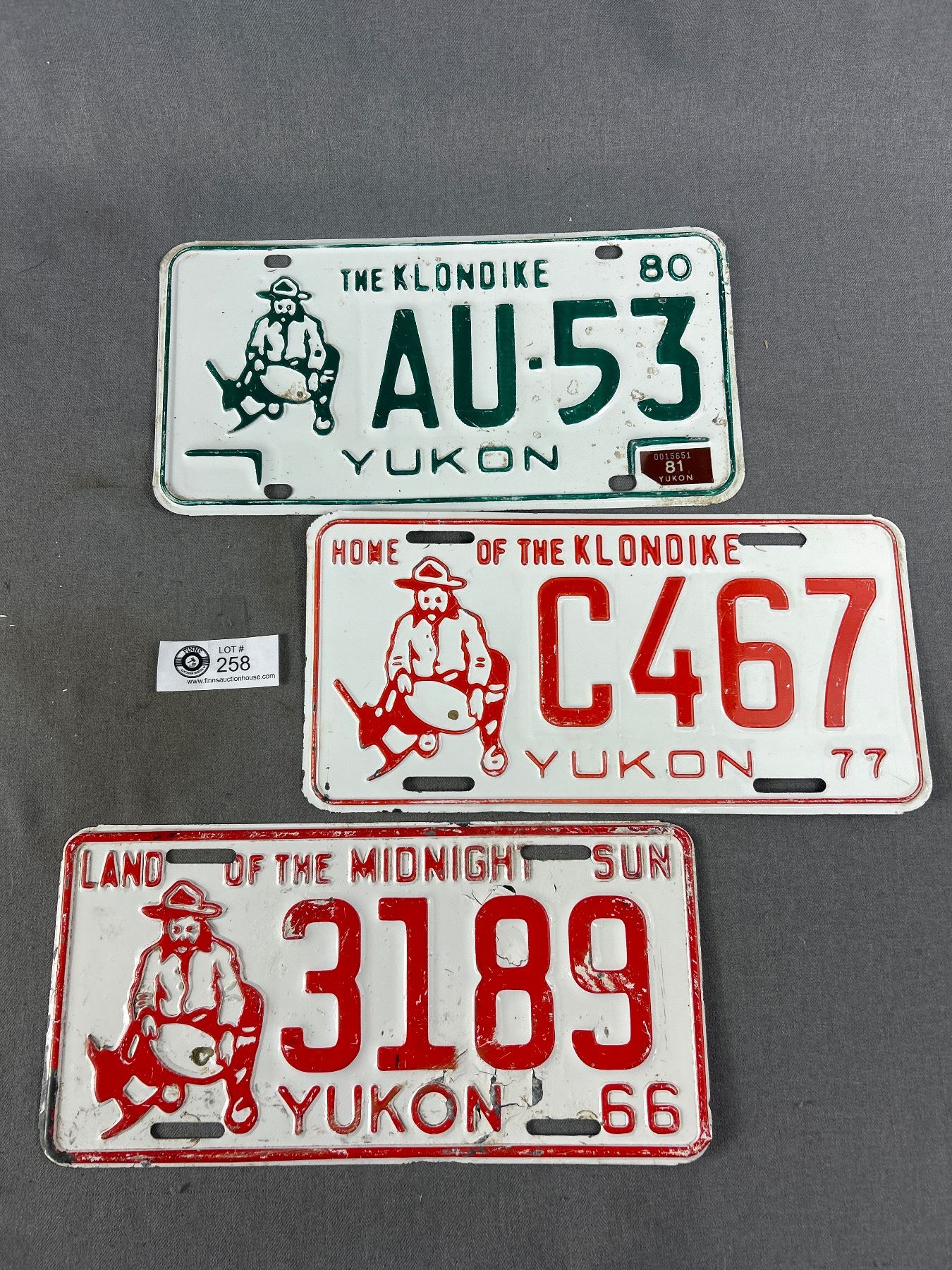 3 Yukon License Plates - 1966 "Land Of The Midnight Sun", 1977 "Home Of The Klondike" & 1980 "The Klondike"