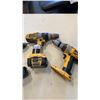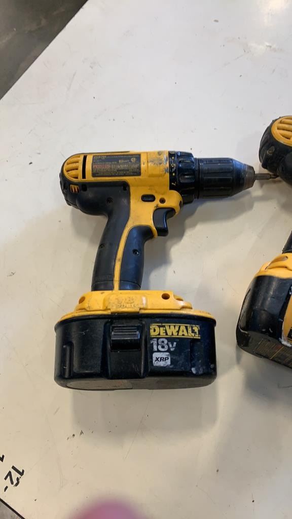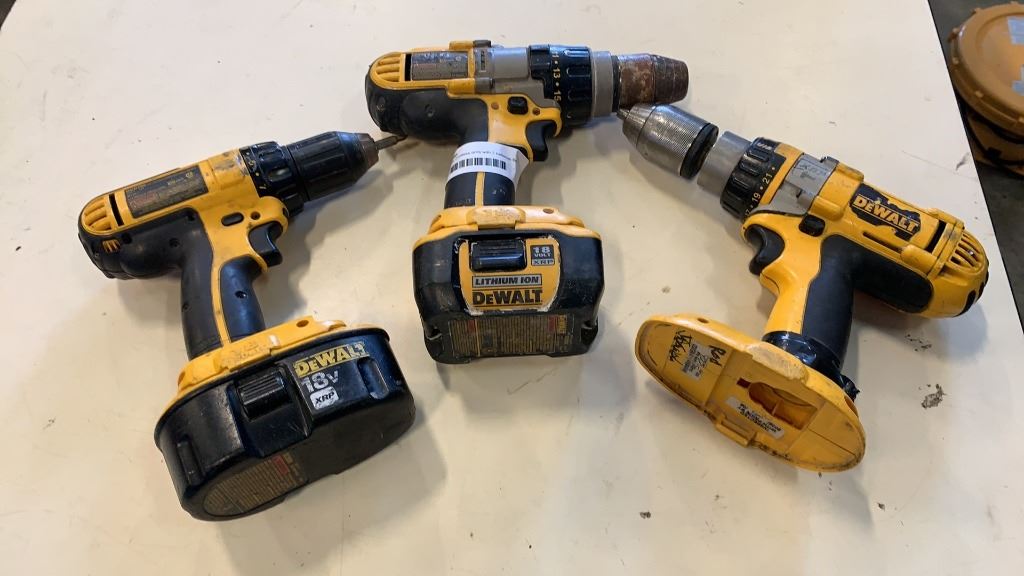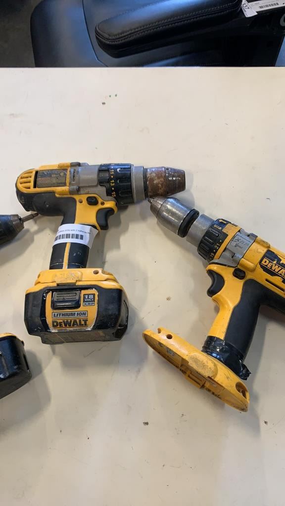 3 dewalt 18v cordless drills with 2 batteries both have power